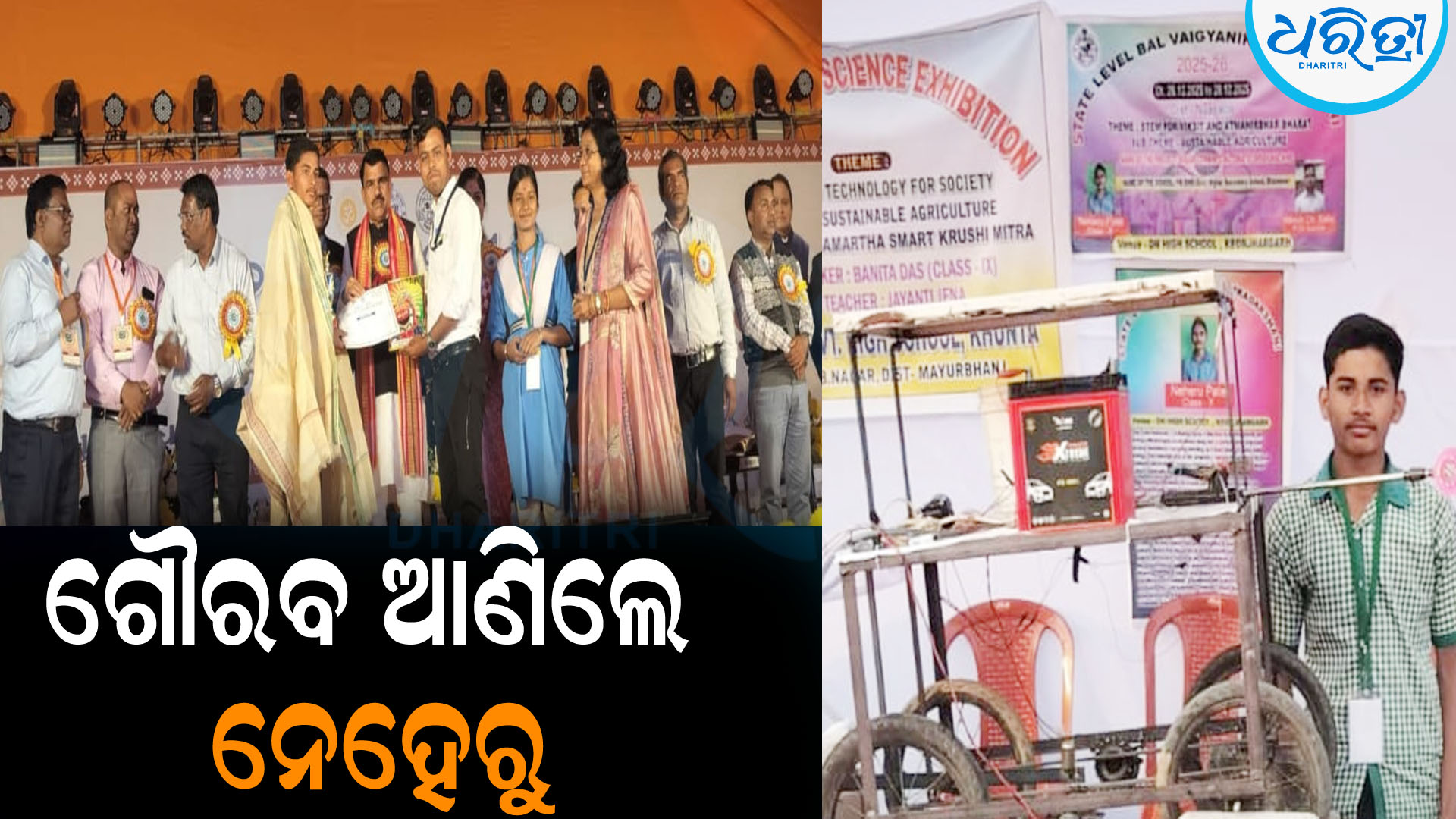 ନୂଆପଡା,୩୦।୧୨(ମକାରୁ ବେମାଲ): ନୂଆପଡା ସଦର ବ୍ଲକ ଭାଲେଶ୍ବର ପିଏମଶ୍ରୀ ସରକାରୀ ଉଚ୍ଚ ବିଦ୍ୟାଲୟର ଦଶମ ଶ୍ରେଣୀ ଛାତ୍ର ରାଜ୍ୟସ୍ତରୀୟ ବିଜ୍ଞାନ ପ୍ରଦର୍ଶନୀ ମେଳାରେ ଦ୍ବିତୀୟ ସ୍ଥାନ ଅଧିକାର କରି ଗୌରବ ଆଣିଛନ୍ତି। ଡିସେମ୍ବର ୨୬ରୁ ୨୮ ପର୍ଯ୍ୟନ୍ତ ୩ ଦିନ ଧରି ୫୨ ତମ ରାଜ୍ୟସ୍ତରୀୟ ବିଜ୍ଞାନ ମେଳା କେନ୍ଦୁଝର ଧନୁର୍ଯ୍ୟ ନାରାୟଣ ଉଚ୍ଚ ବିଦ୍ୟାଳୟଠାରେ ଅନୁଷ୍ଠିତ ହୋଇଥିଲା । ସେହି ବିଜ୍ଞାନ ମେଳାରେ ପିଏମଶ୍ରୀ ସରକାରୀ ଉଚ୍ଚ ବିଦ୍ୟାଳୟ ଭାଲେଶ୍ବରର ଦଶମ ଶ୍ରେଣୀ ଛାତ୍ର ନେହେରୁ ପଟେଲ ସୌର ସଂଯୁକ୍ତ ସ୍ବୟଂ ଚାଳିତ ସ୍ପ୍ରେୟର ମେଶିନ ପ୍ରଦର୍ଶନ କରି ଦ୍ବିତୀୟ ସ୍ଥାନ ଅଧିକାର କରି ଗଣଶିକ୍ଷା ମନ୍ତ୍ରୀ ନିତ୍ୟାନନ୍ଦ ଗଣ୍ଡଠାରୁ ପୁରସ୍କୃତ ହୋଇ ବିଦ୍ୟାଳୟ ଓ ଜିଲା ପାଇଁ ଗୌରବ ଆଣିଛନ୍ତି। ଆଗାମୀ ଦିନରେ କଲିକତା ଠାରେ ଆୟୋଜିତ ହେବାକୁ ଥୁବା ଜୋନାଲ ସ୍ତରୀୟ ବିଜ୍ଞାନ ପ୍ରଦର୍ଶନୀ ମେଳାରେ ପ୍ରତିନିଧିତ୍ କରିବା ପାଇଁ ମନୋନୀତ ହୋଇଛନ୍ତି ।