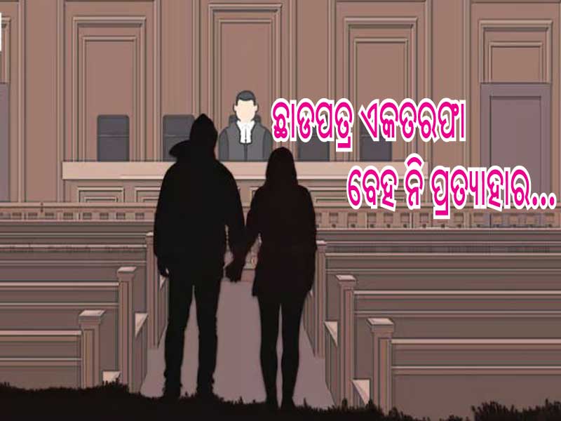 ଦମ୍ପତି ପାରସ୍ପରିକ ସମ୍ମତି ଦେଇ ଛାଡପତ୍ର କରିବାକୁ ରାଜି ହେଲେ। ଚୁକ୍ତିନାମାର ଆଂଶିକ କାର୍ଯ୍ୟକାରିତାରେ ସ୍ତ୍ରୀଙ୍କ ଦ୍ୱାରା ୫ ଲକ୍ଷର ଏକ ଡିମାଣ୍ଡ ଡ୍ରାଫ୍ଟ ଗ୍ରହଣ କରାଯାଇଥିଲା। ତେବେ ସେ ପରେ ଏଥିରୁ ଓହରି ଆସିଥିଲେ।