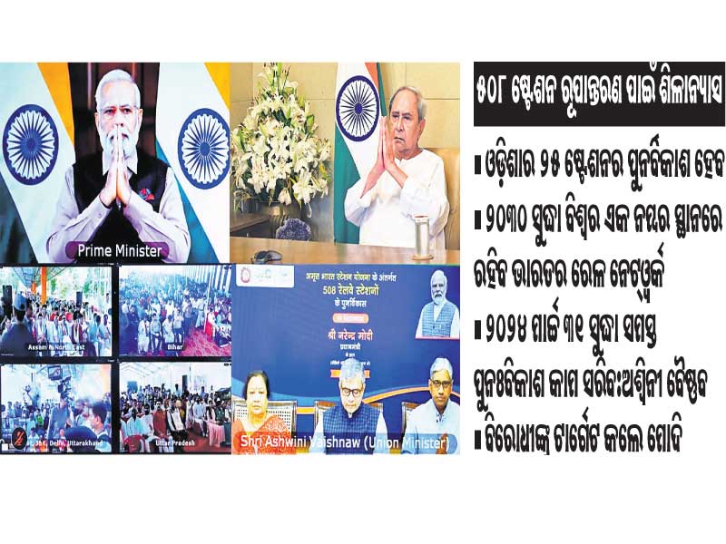 ଏପଟେ ଓଡ଼ିଶାରେ ମଧ୍ୟ ବିଭିନ୍ନ ରେଳ ଷ୍ଟେଶନରେ ସ୍ବତନ୍ତ୍ର ଶିଳାନ୍ୟାସ କାର୍ଯ୍ୟକ୍ରମର ଆୟୋଜନ କରାଯାଇଥିଲା। ସମ୍ବଲପୁରର ହୀରାକୁଦ୍ ରେଳ ଷ୍ଟେଶନରେ କେନ୍ଦ୍ରମନ୍ତ୍ରୀ ଧର୍ମେନ୍ଦ୍ର ପ୍ରଧାନ ଯୋଗଦେଇ କହିଲେ, ବିମାନବନ୍ଦର ଭଳି ଦେଶରେ ରେଳ ଷ୍ଟେଶନକୁ ଅତ୍ୟାଧୁନିକ ଷ୍ଟେଶନରେ ପରିଣତ କରିବା ପୂର୍ବରୁ କେବେ କଳ୍ପନା କରାଯାଇପାରି ନ ଥିଲା। ଏହା କେବଳ ମୋଦିଜୀ ହିଁ ଚିନ୍ତା କରିପାରନ୍ତି। ଆଜି ମୋଦି ସରକାରରେ ନୂଆ ରେଳ ଚଳାଚଳ, ରେଳ ଲାଇନ୍ ସହ ଯାତ୍ରୀ ସୁବିଧାକୁ ଗୁରୁତ୍ୱ ଦେଇ ଅତ୍ୟାଧୁନିକ ରେଳ ଷ୍ଟେଶନ କରିବାର କଳ୍ପନାକୁ ବାସ୍ତବରେ ସାକାର କରାଯାଇଛି। ସେହିପରି ପୂର୍ବତଟ ରେଳପଥ ପକ୍ଷରୁ ୩ଟି ଷ୍ଟେଶନରେ ଶିଳାନ୍ୟାସ କାର୍ଯ୍ୟକ୍ରମ ହୋଇଥିଲା।