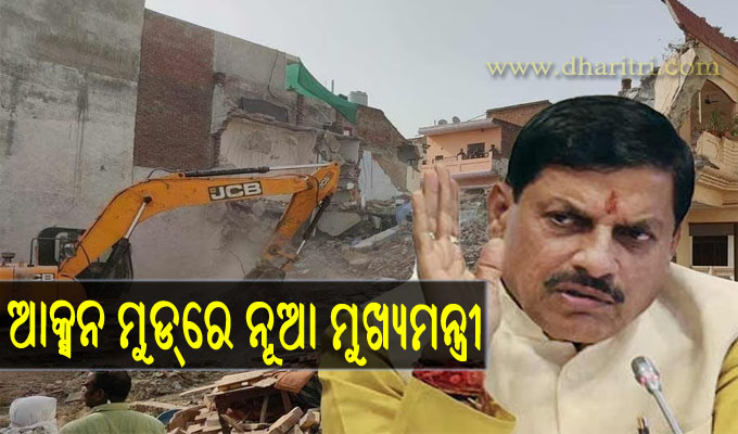 ଭୋପାଳ,୧୫।୧୨: ମଧ୍ୟପ୍ରଦେଶର ନବନିଯୁକ୍ତ ମୁଖ୍ୟମନ୍ତ୍ରୀ ମୋହନ ଯାଦବଙ୍କ ଆରମ୍ଭରୁ ଆକ୍ସନ ମୁଡ୍ରେ ଅଛନ୍ତି। କ୍ଷମତାକୁ ଆସିବାର ଗୋଟିଏ ଦିନ ମଧ୍ୟରେ ପ୍ରଥମ ବୁଲଡୋଜର କାର୍ଯ୍ୟାନୁଷ୍ଠାନ ଗ୍ରହଣ କରାଯାଇଛି। ଭାଜପା କର୍ମୀଙ୍କୁ ଆକ୍ରମଣ କରିଥିବା ଅଭିଯୁକ୍ତଙ୍କ ଘର ବୁଲ୍ଡୋଜର ଦ୍ୱାରା ଭଙ୍ଗାଯାଇଛି। ଅପରାଧକୁ ରୋକିବା ପାଇଁ ଭୋପାଳ ଜିଲା ପ୍ରଶାସନ ମୁଖ୍ୟମନ୍ତ୍ରୀଙ୍କ ନିର୍ଦ୍ଦେଶରେ ଏହି କାର୍ଯ୍ୟାନୁଷ୍ଠାନ ଗ୍ରହଣ କରିଛନ୍ତି।
