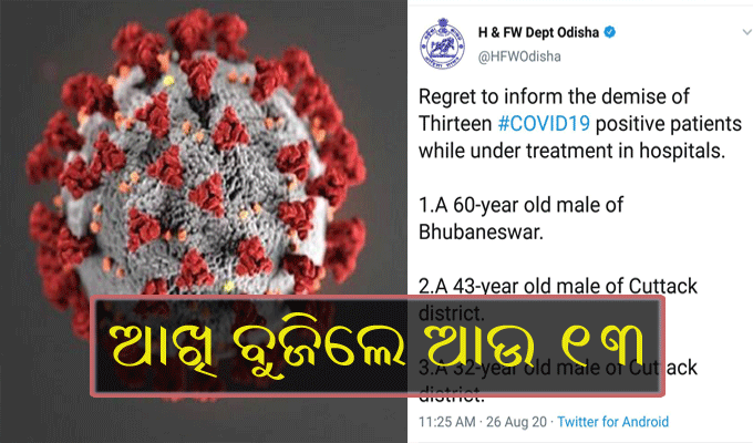 ରାଜ୍ୟରେ କରୋନାରେ ଆଖି ବୁଜିଲେ ଆଉ ୧୩ ଆକ୍ରାନ୍ତ