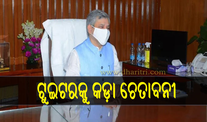 ନୂଆଦିଲ୍ଲୀ,୮।୭: ପ୍ରଧାନମନ୍ତ୍ରୀ ନରେନ୍ଦ୍ର ମୋଦୀଙ୍କ କ୍ୟାବିନେଟର ସମ୍ପ୍ରସାରଣ ପରେ ନୂତନ ମନ୍ତ୍ରୀମାନେ ଗୁରୁବାର ଦାୟିତ୍ୱ ଗ୍ରହଣ କରିବା ଆରମ୍ଭ କରିଛନ୍ତି। ଦେଶର ନୂତନ ଇଲେକ୍ଟ୍ରୋନିକ୍ସ ଏବଂ ସୂଚନା ପ୍ରଯୁକ୍ତିବିଦ୍ୟା ମନ୍ତ୍ରୀ ଅଶ୍ୱିନୀ ବୈଷ୍ଣବ ଦାୟିତ୍ୱ ଗ୍ରହଣ କରିବା ମାତ୍ରେ ଟୁଇଟରକୁ କଡା ବାର୍ତ୍ତା ଦେଇଛନ୍ତି। ଟୁଇଟର ନୂତନ ଆଇଟି ନିୟମ ପାଳନ ନ କରିବା ବିଷୟରେ ଅଶ୍ୱିନୀ କହିଛନ୍ତି ଯେ ଦେଶର ଆଇନ ସର୍ବୋଚ୍ଚ, ସମସ୍ତଙ୍କୁ ମାନିବାକୁ ପଡିବ। ଟୁଇଟର୍ ମଧ୍ୟ ନିୟମ ଅନୁସରଣ କରିବା ଉଚିତ୍ ବୋଲି ସେ କହିଛନ୍ତି।
