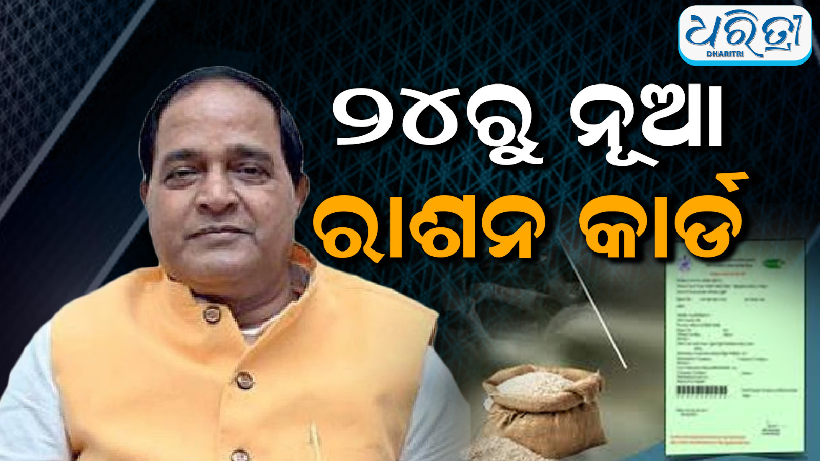 ଭୁବନେଶ୍ୱର,୨୨।୪ ଆସନ୍ତା ୨୪ ତାରିଖରେ ବଣ୍ଟାଯିବ ନୂଆ ରାଶନ କାର୍ଡ। ପ୍ରଥମ ପର୍ଯ୍ୟାୟ ରାଶନ କାର୍ଡ ପୁରୀରେ ବଣ୍ଟନ କରାଯିବ । ପୁରୀଠାରେ ପଞ୍ଚାୟତିରାଜ ଦିବସ ପାଳନ ବେଳେ ଏହି ବଣ୍ଟନ କାର୍ଯ୍ୟକ୍ରମ ଅନୁଷ୍ଠିତ ହେବ ଏବଂ ଏଥିରେ ମୁଖ୍ୟମନ୍ତ୍ରୀ ମୋହନ ଚରଣ ମାଝି ଯୋଗ ଦେଇ ଯୋଗ୍ୟ ହିତାଧିକାରୀଙ୍କୁ ନୂଆ ରାଶନ କାର୍ଡ ପ୍ରଦାନ କରିବେ । ରାଜ୍ୟରେ ୫ ଲକ୍ଷ ୯୦ ହଜାର ହିତାଧିକାରୀ ନୂତନ ରାସନ କାର୍ଡ ପାଇବେ । ଏନେଇ ମଙ୍ଗଳବାର ଖାଦ୍ୟ ଯୋଗାଣ ମନ୍ତ୍ରୀ କୃଷ୍ଣଚନ୍ଦ୍ର ପାତ୍ର ସୂଚନା ଦେଇଛନ୍ତି ।