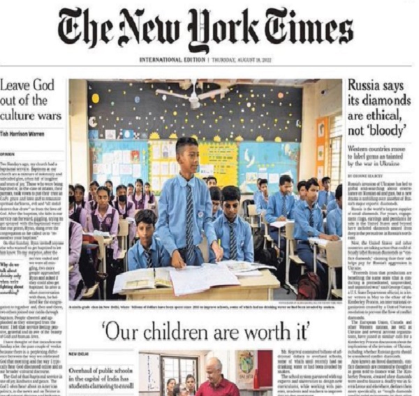 ନୂଆଦିଲ୍ଲୀ,୧୯ା୮: ଆମେରିକାର ପ୍ରତିଷ୍ଠିତ ଖବରକାଗଜ ନ୍ୟୁୟର୍କ ଟାଇମ୍ସର ଅଗଷ୍ଟ ୧୮ ଗୁରୁବାର ସଂସ୍କରଣରେ ଦିଲ୍ଲୀ ଉପମୁଖ୍ୟମନ୍ତ୍ରୀ ମନୀଷ ସିସୋଡିଆଙ୍କୁ ନେଇ ଏକ ଆର୍ଟିକଲ ପ୍ରକାଶ ପାଇଛି। ପ୍ରଥମ ପୃଷ୍ଠାରେ ପ୍ରକାଶିତ ଉକ୍ତ ଷ୍ଟୋରିରେ ଦିଲ୍ଲୀ ଶିକ୍ଷାମନ୍ତ୍ରୀ ରୂପେ ତାଙ୍କ ଉଲ୍ଲେଖନୀୟ ସଫଳତା ସମ୍ପର୍କରେ ଅବତାରଣା କରାଯାଇଛି। ଦିଲ୍ଲୀ ମୁଖ୍ୟମନ୍ତ୍ରୀ ଅରବିନ୍ଦ କେଜ୍ରିଓ୍ବାଲ ଶୁକ୍ରବାର ଏନେଇ ସିସୋଡିଆଙ୍କୁ ପ୍ରଶଂସା କରିଛନ୍ତି। ଏଥିସହ ଦିଲ୍ଲୀ ଶିକ୍ଷା ମଡେଲ ସମ୍ପର୍କିତ ଉକ୍ତ ନିବନ୍ଧକୁ ସୋସିଆଲ ମିଡିଆରେ ଶେୟାର କରିଛନ୍ତି। ଅନ୍ୟପକ୍ଷେ ଭାଜପା ଏହାକୁ ଏକ ‘ପେଡ୍ ନ୍ୟୁଜ୍’ ଭାବେ ଅଭିହିତ କରି କେନ୍ଦ୍ରଶାସିତ ଅଞ୍ଚଳର ଆମ୍ ଆଦ୍ମୀ ପାର୍ଟି (ଏଏପି) ସରକାରଙ୍କୁ ସମାଲୋଚନା କରିଛି। ଦିଲ୍ଲୀ ଭାଜପାର ପୂର୍ବତନ ଅଧ୍ୟକ୍ଷ ମନୋଜ ତିଓ୍ବାରୀ ନ୍ୟୁୟର୍କ ଟାଇମ୍ସର ଷ୍ଟୋରି ସହ ଖଲିଜ୍ ଟାଇମ୍ସରେ ପ୍ରକାଶିତ ସମାନ ରିପୋର୍ଟର ପେପର କଟିଂକୁ ଏକସଙ୍ଗେ ଟୁଇଟ୍ କରିଛନ୍ତି। ଜଣେ ବ୍ୟକ୍ତିଙ୍କ ଦ୍ୱାରା ପ୍ରସ୍ତୁତ ଗୋଟିଏ ରିପୋର୍ଟ ଏକକାଳୀନ ଦୁଇଟି ବିଦେଶୀ ଗଣମାଧ୍ୟମରେ କିପରି ପ୍ରକାଶ ପାଇଲା ବୋଲି ମନୋଜ ପ୍ରଶ୍ନ କରିଛନ୍ତି। ଅନ୍ୟପଟେ ଭାଜପାର ଏହି ପ୍ରଶ୍ନର ପ୍ରତିକ୍ରିୟା ରଖିଛି ନ୍ୟୁୟର୍କ ଟାଇମ୍ସ। ଖବରକାଗଜ ପକ୍ଷରୁ ସ୍ପଷ୍ଟିକରଣ ରଖାଯାଇଛି ଯେ, ଏହି ଆର୍ଟିକଲ ବିଜ୍ଞାପନ କିମ୍ବା ପେଡ୍ ନ୍ୟୁଜ୍ ନୁହେଁ, ବରଂ ଗ୍ରାଉଣ୍ଡ ରିପୋର୍ଟ ଉପରେ ଆଧାରିତ। ଦିଲ୍ଲୀର ଶିକ୍ଷା ବ୍ୟବସ୍ଥାରେ ସଂସ୍କାର ଆଣିଥିବା ଉପରେ ଆମର ଏହି ରିପୋର୍ଟ ନିରପେକ୍ଷ ତଥା ଗ୍ରାଉଣ୍ଡ ରିପୋର୍ଟିଂ ଉପରେ ଆଧାରିତ ବୋଲି ନ୍ୟୁୟର୍କ ଟାଇମ୍ସ କହିଛି।