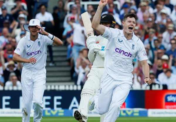 ଲଣ୍ଡନ,୨।୬: ଐତିହାସିକ ଲଡର୍ସ ଗ୍ରାଉଣ୍ଡରେ ଗୁରୁବାରଠାରୁ ନ୍ୟୁଜିଲାଣ୍ଡ ଓ ଇଂଲଣ୍ଡ ମଧ୍ୟରେ ପ୍ରଥମ ଟେଷ୍ଟ ଆରମ୍ଭ ହୋଇଯାଇଛି। ପ୍ରଥମ ଦିନ ଟସ୍ ଜିତି ବ୍ୟାଟିଂ କରିବାକୁ ନିଷ୍ପତ୍ତି ନେଇଥିବା ଭ୍ରମଣକାରୀ ନ୍ୟୁଜିଲାଣ୍ଡ ବିପର୍ଯ୍ୟୟର ସମ୍ମୁଖୀନ ହୋଇ ୧୩୨ ରନ୍ରେ ଅଲଆଉଟ୍ ହୋଇଯାଇଛି। ଦଳ ମାତ୍ର ୪୫ ରନ୍ ମଧ୍ୟରେ ପ୍ରମୁଖ ୭ ବ୍ୟାଟରଙ୍କୁ ହରାଇ ସାରିଥିଲା। କଲିନ ଡେ’ ଗ୍ରାଣ୍ଡହୋମଙ୍କ ଅପରାଜିତ ୪୨(୪ ଚୌକା) ଏବଂ ଟିମ୍ ସୌଦି (୨୬)ଙ୍କ ଯୋଗୁ ଦଳୀୟ ସ୍କୋର ୧୩୨ ରନ୍ରେ ପହଞ୍ଚି ପାରିଥିଲା। ଦଳ ୬ ବ୍ୟାଟର ଦୁଇ ଅଙ୍କ ଛୁଇଁ ପାରି ନ ଥିଲେ। ଏହି ମ୍ୟାଚ୍ରେ ଟେଷ୍ଟ ପଦାର୍ପଣ କରୁଥିବା ମ୍ୟାଟି ପଟ୍ସ ୯.୨ ଓଭରରେ ୧୩ ରନ୍ ଦେଇ ୪ ଉଇକେଟ ନେଇଥିଲେ। ଅନ୍ୟମାନଙ୍କ ମଧ୍ୟରେ ଜେମ୍ସ ଆଣ୍ଡରସନ ୪ ଉଇକେଟ ନେଇଥିବା ବେଳେ ଷ୍ଟ୍ରୁଆର୍ଟ ବ୍ରଡ ଓ ଅଧିନାୟକ ବେନ ଷ୍ଟୋକ୍ସ ଗୋଟିଏ ଲେଖାଏ ଉଇକେଟ ହାତେଇଥିଲେ। ଏହି ଇନିଂସର ୨୩ତମ ଓଭର ଶେଷ ହେବା ପରେ ୨୩ ସେକେଣ୍ଡ ପାଇଁ ଉଭୟ ଦଳର ଖେଳାଳିମାନେ କରତାଳି ମାରି ଅଷ୍ଟ୍ରେଲିଆନ କିମ୍ବଦନ୍ତୀ ଲେଗ୍ ସ୍ପିନର ଶେନ ଓ୍ବର୍ନଙ୍କୁ ଶ୍ରଦ୍ଧାଞ୍ଜଳି ଦେଇଥିଲେ।