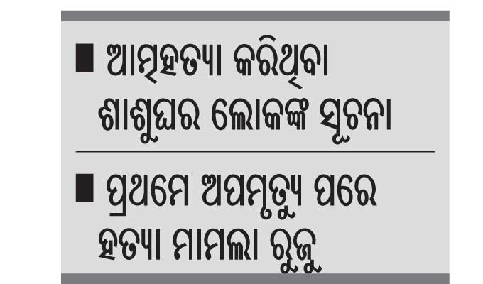 ରସୁଲପୁର,୨।୧୦(ଡି.ଏନ.ଏ.): କୁଆଖିଆ ଥାନା ଅନ୍ତର୍ଗତ ବାହାଦଲାପୁର ପଞ୍ଚାୟତ ଓରାଳି ଗ୍ରାମରେ ଶୁକ୍ରବାର ରାତିରେ ଜଣେ ନବ ବିବାହିତାଙ୍କୁ ହତ୍ୟା କରାଯାଇଛି। ସେ ହେଲେ ଗ୍ରାମର ରାଜକିଶୋର ମଳିକଙ୍କ ସ୍ତ୍ରୀ ପିଙ୍କି ପ୍ରଧାନ। ଏ ସମ୍ପର୍କରେ ପିଙ୍କିଙ୍କ ବାପା ରଞ୍ଜନ ପ୍ରଧାନ ଥାନାରେ ଲିଖିତ ଅଭିଯୋଗ କରିଛନ୍ତି। ଶାଶୁଘର ଲୋକେ ତାଙ୍କୁ ପିଟି ଦରମରା କରିବା ପରେ ତଣ୍ଟି ଚିପି ମାରି ଦେଇଛନ୍ତି। ପରେ ଏହାକୁ ଆତ୍ମହତ୍ୟାରୂପ ଦେବାକୁ ଚେଷ୍ଟା କରିଛନ୍ତି ବୋଲି ସେ ଅଭିଯୋଗରେ ଉଲ୍ଲେଖ କରିଛନ୍ତି। ଅନ୍ୟପକ୍ଷରେ ପିଙ୍କିଙ୍କ ଶାଶୁଘର ଲୋକେ ଏହାକୁ ଆତ୍ମହତ୍ୟା ବୋଲି କହିଛନ୍ତି। ପୋଲିସ ମୃତଦେହ ଜବତ କରି ବ୍ୟବଚ୍ଛେଦ କରିବା ପରେ ତାଙ୍କ ପରିବାର ଲୋକଙ୍କୁ ହସ୍ତାନ୍ତର କରିଛି। ଏ ନେଇ ପ୍ରଥମେ ଥାନାରେ ନଂ-୧୭/୨୨ରେ ଏକ ଅପମୃତ୍ୟୁ ମାମଲା ରୁଜୁ ହୋଇଥିବାବେଳେ ପରେ ନଂ.୩୦୨/୨୨ରେ ଏକ ହତ୍ୟା ମାମଲା ରୁଜୁ ହୋଇଛି। ପୋଲିସ ଘଟଣାର ଅଧିକ ତଦନ୍ତ ଜାରି ରଖିଛି।