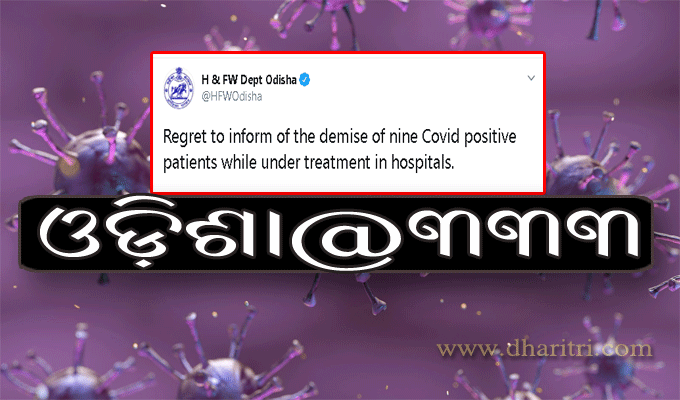 ଭୁବନେଶ୍ୱର,୧୫।୮(ବ୍ୟୁରୋ): ଗୋଟିଏ ପରେ ଗୋଟିଏ ମୁଣ୍ଡ ନେଇ ଚାଲିଛି କରୋନା। ରାଜ୍ୟରେ ଶନିବାର କରୋନା ସଂକ୍ରମଣରେ ୯ଜଣଙ୍କ ମୃତ୍ୟୁ ଘଟିଛି। ସେଥିରୁ ଜଣେ କଟକ ଜିଲାର(୬୭ ବର୍ଷୀୟା ବୃଦ୍ଧା, ୫୦ ବର୍ଷୀୟ ବ୍ୟକ୍ତି), ଗଞ୍ଜାମର ୫୩ବର୍ଷୀୟ ବ୍ୟକ୍ତି, କେନ୍ଦୁଝରର ୫୮ ବର୍ଷୀୟ ବ୍ୟକ୍ତି, ନୟାଗଡ଼ର ୭୫ ବର୍ଷୀୟ ବୃଦ୍ଧ, ସମ୍ବଲପୁରର(୬୫ ବର୍ଷୀୟ ବୃଦ୍ଧ, ୭୪ ବର୍ଷୀୟା ବୃଦ୍ଧା, ୭୮ ବର୍ଷୀୟା ବୃଦ୍ଧ, ୫୦ ବର୍ଷୀୟା ମହିଳା) ରହିଛନ୍ତି। ଏନେଇ ରାଜ୍ୟ ସ୍ବାସ୍ଥ୍ୟ ଓ ପରିବାର କଲ୍ୟାଣ ବିଭାଗ ପକ୍ଷରୁ ଅପରାହ୍ନରେ ଟୁଇଟ୍ କରି ସୂଚନା ଦିଆଯାଇଛି। ଏହାକୁ ମିଶାଇ ରାଜ୍ୟରେ ମୋଟ ମୃତ୍ୟୁ ସଂଖ୍ୟା ୩୩୩କୁ ବୃଦ୍ଧି ପାଇଛି।