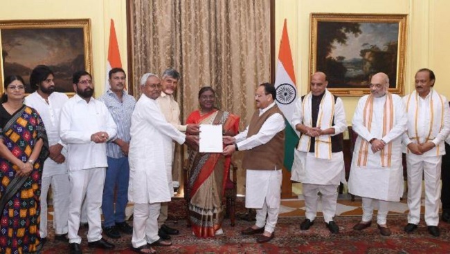 ସୂଚନାଯୋଗ୍ୟ, ଲୋକ ସଭା ନିର୍ବାଚନରେ ଭାଜପା ସଂଖ୍ୟାଗରିଷ୍ଠତା ଛୁଇଁବାରେ ବିଫଳ ହୋଇଛି। ତେବେ ଏନଡିଏ ସରକାର ଗଠନ ପାଇଁ ଜେଡିୟୁ ଏବଂ ଟିଡିପି ଭାଜପାକୁ ସମର୍ଥନ କରିଛନ୍ତି। ନିର୍ବାଚନରେ ଜେଡିୟୁ ୧୨ ଟି ଲୋକ ସଭା ଆସନ ପାଇଛି। ଯେଉଁଠାରେ ଟିଡିପି ୧୬ଟି ସିଟ ପାଇଛି। I.N.D.I.A ର ସୂତ୍ରଧର ଥିବା ନୀତୀଶ କୁମାର ସ୍ପଷ୍ଟ ଭାବରେ କହିଛନ୍ତି ଯେ ସେ ଏହି ଏନଡିଏ ସରକାରକୁ ସମର୍ଥନ କରିବେ।