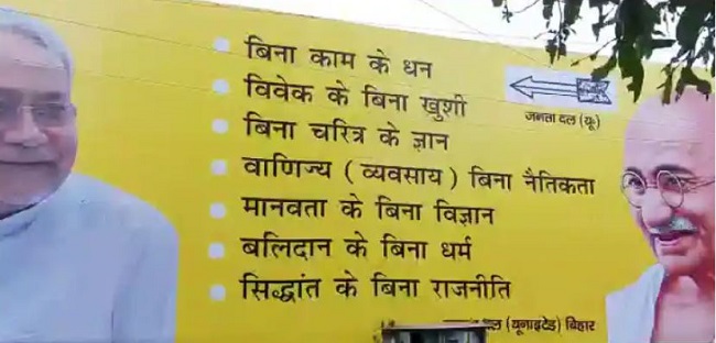 ପାଟନା,୨୮ ।୮: ଜନତା ଦଳ ୟୁନାଇଟେଡ(ଜେଡିୟୁ)ରେ ଅସଲ ବିଗବସ୍ କିଏ ତାହା ଏବେ ସ୍ଥିର ହୋଇଯାଇଛି । ଜେଡିୟୁ କାର୍ଯ୍ୟାଳୟ ବାହାରେ ଲାଗିଥିବା ପୋଷ୍ଟରରୁ ଏହା ବୁଝା ପଡୁଛି । ଯେଉଁ ପୋଷ୍ଟର ଦଳ ମୁଖ୍ୟାଳୟ ବାହାରେ ଲଗାଯାଇଛି ସେଥିରେ କେବଳ ମୁଖ୍ୟମନ୍ତ୍ରୀ ନୀତୀଶ କୁମାରଙ୍କ ଫଟୋ ରହିଛି । ନା ଏଥିରେ ଲଲନ ସିଂ, ନା ଆରସିପି ସିଂ, ନା ଉପେନ୍ଦ୍ର କୁଶାୱାହଙ୍କ ଫଟୋ ରହିଛି । ନୀତୀଶ କୁମାରଙ୍କ ଫଟୋ ସହ ଅନ୍ୟଏକ ପାଶ୍ୱର୍କୁ ମହାତ୍ମା ଗାନ୍ଧୀଙ୍କ ଫଟୋ ରହିଛି । ପୋଷ୍ଟର ମାଧ୍ୟମରେ ଏହାସ୍ପଷ୍ଟ ହୋଇଛି ଯେ ଗତଦିନ ମାନଙ୍କରେ ଦଳ ମଧ୍ୟରେ ଯାହା କିଛି ହୋଇଛି ଏହାପରେ ନୀତୀଶ କୁମାର ନିଜ ହାତରେ ଶାସନ ଭାର ରଖିଲେ । ନୀତୀଶ ଏହାକୁ କାହା ହାତକୁ ଦେଇ ବିବାଦ ମଧ୍ୟରେ ଫସିିଯିବାକୁ ଚାହୁଁ ନ ଥିବା ଜଣାପଡିଛି । ସୂଚନାଯୋଗ୍ୟ, ଜେଡିୟୁର ରାଷ୍ଟ୍ରୀୟ ପରିଷଦ ବୈଠକ ୨୯ ଅଗଷ୍ଟରେ ହେବ । ୨୮ ଅଗଷ୍ଟ ଅର୍ଥାତ୍ ଶନିବାର କେତେଜଣ ପଦାଧିକାରୀଙ୍କୁ ନେଇ ବୈଠକ ରହିଛି । ହେଲେ ଦଳ ମୁଖ୍ୟାଳୟରେ ଏଭଳି ପୋଷ୍ଟର ଲାଗିଯାଇଛି । ଉକ୍ତ ପୋଷ୍ଟରରେ ସମସ୍ତ ବରିଷ୍ଠ ନେତାକୁ ଆଡେଇ ଦିଆଯାଇଥିବା ବେଳେ ଏହା ଜାହିର କରାଯାଇଛି କି ଦଳରେ ଏବେବି ନୀତୀଶ କୁମାରଙ୍କ ଦବଦବା ରହିଛି ।