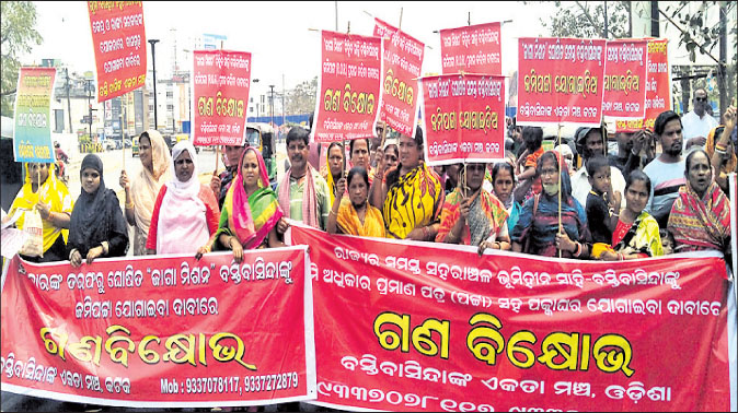 ଭୁବନେଶ୍ୱର,୧୪ା୩(ବ୍ୟୁରୋ):‘ଭୂମି ନାହିଁ ତ ଭୋଟ ନାହିଁ’ ନାରାବାଜିରେ ସୋମବାର ଭୁବନେଶ୍ୱର ଗାନ୍ଧୀମାର୍ଗ କମ୍ପିଛି। ଭୂମି ଅଧିକାର ପ୍ରମାଣପତ୍ର ସହ ପକ୍କାଘର ପ୍ରଦାନ ଦାବିରେ ବିଭିନ୍ନ ସହରରୁ ଆସିଥିତ୍ବା ବସ୍ତିବାସିନ୍ଦା ଏପରି ନାରାବାଜି କରି ଦାବି ଉପସ୍ଥାପନ କରିଛନ୍ତି। ଏହି ପରିପ୍ରେକ୍ଷୀରେ ବସ୍ତି ଏକତା ମଞ୍ଚ ପକ୍ଷରୁ ଏକ ବିରାଟ ଶୋଭାଯାତ୍ରା ମାଷ୍ଟରକ୍ୟାଣ୍ଟିନ ଛକରୁ ବାହାରି ଧାରଣାସ୍ଥଳରେ ପହଞ୍ଚତ୍ଥିଲା। ସେଠାରେ ଆୟୋଜିତ ପ୍ରତିବାଦ ସଭାରେ ମଞ୍ଚର ରାଜ୍ୟ ସଭାପତି ଶେଖ୍ ଅବଦୁଲ୍ଲା ସଭାପତିତ୍ୱ କରି କହିଲେ, ରାଜ୍ୟ ସରକାରଙ୍କ ଘୋଷଣା ଅନୁସାରେ ୨୦୨୨ ସୁଦ୍ଧା ରାଜ୍ୟର ସମସ୍ତ ଭୂମିହୀନ ବସ୍ତିବାସିନ୍ଦାଙ୍କୁ ଜମି ଅଧିକାର ପ୍ରମାଣ ପତ୍ର ମିଳିବା କଥା। ହେଲେ ତାହା ହୋଇନାହିଁ। କେନ୍ଦ୍ର ଓ ରାଜ୍ୟ ସରକାରଙ୍କ ଘୋଷଣାକୁ ଶୀଘ୍ର କାର୍ଯ୍ୟକାରୀ କରିବା ପାଇଁ ‘ପଟ୍ଟା’ ସମ୍ପର୍କିତ ଆଇନ ପାସ୍ କରିବା ଦାବି ରହିଥିତ୍ବା ମଞ୍ଚର ସାଧାରଣ ସମ୍ପାଦକ ହେମେନ୍ଦ୍ର ସାମଲ କହିଛନ୍ତି। ତେବେ ଦାବି ପୂରଣ ନ ହେଲେ ବସ୍ତିବାସିନ୍ଦା ଆସନ୍ତା ନିର୍ବାଚନରେ ଭୋଟ୍ ବର୍ଜନ କରିବେ ବୋଲି ଚେତାବନୀ ଦେଇଛନ୍ତି। କଟକ ସହରରୁ ବିଭିନ୍ନ ବସ୍ତି ଉଚ୍ଛେଦ କରାଯାଇ ସେମାନଙ୍କୁ କାଠଯୋଡ଼ି ଓ ମହାନଦୀ କୂଳରେ ଥଇଥାନ କରାଯାଉଛି। ସେମାନଙ୍କ ଧନଜୀବନ ସୁରକ୍ଷା ପାଇଁ ଘେରିବନ୍ଧର ଆବଶ୍ୟକତା ରହିଥିତ୍ବା ମଞ୍ଚ ପକ୍ଷରୁ କୁହାଯାଇଛି। କଟକର ଅନ୍ୟାନ୍ୟ ବସ୍ତିରେ ଲାଗିରହିଥିତ୍ବା ସମସ୍ୟାର ତୁରନ୍ତ ସମାଧାନ ସହ ରାଉରକେଲା, ବାଲେଶ୍ୱର, ବାରିପଦା, ଭଦ୍ରକ, ସମ୍ବଲପୁର, ଅନୁଗୁଳ, ପୁରୀ, ଭୁବନେଶ୍ୱର ଓ କେନ୍ଦ୍ରାପଡ଼ା ଆଦି ସହରର ଭୂମିହୀନଙ୍କୁ ଜମି ଅଧିକାର ପ୍ରମାଣ ପତ୍ର ପ୍ରଦାନ ସହ ପକ୍କାଘର ପ୍ରଦାନ ପାଇଁ ଦାବି କରାଯାଇଛି। ବିକ୍ଷୋଭ ପରେ ମଞ୍ଚର ସଭାପତିଙ୍କ ନେତୃତ୍ୱରେ ଏକ ୫ ଜଣିଆ ପ୍ରତିନିଧି ଦଳ ରାଜସ୍ବମନ୍ତ୍ରୀଙ୍କ ଉଦ୍ଦେଶ୍ୟରେ ଦାବି ପତ୍ର ପ୍ରଦାନ କରିଥିଲେ।