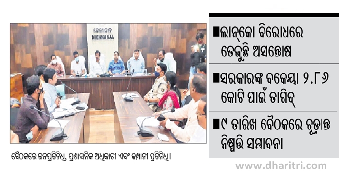ଢେଙ୍କାନାଳ ଅଫିସ, ୩୧।୧୦: ଢେଙ୍କାନାଳ ଜିଲା ଓଡ଼ାପଡ଼ା ବ୍ଲକ ଖଡଗପ୍ରସାଦ ଓ କୁରୁଣ୍ଟିସ୍ଥିତ ଲାନ୍କୋ-ବାବନ୍ଧ ପାୱାର ପ୍ଲାଣ୍ଟ ବନ୍ଦ ହୋଇଯାଇଛି। ତେବେ କ୍ଷତିଗ୍ରସ୍ତ ପ୍ରଜାଙ୍କ ଦାବି ପୂରଣ କିମ୍ବା କ୍ଷତିପୂରଣ ପ୍ରଦାନ ନେଇ ବାରମ୍ବାର ବୈଠକ ବସୁଥିଲେ ମଧ୍ୟ ଚୂଡ଼ାନ୍ତ ନିଷ୍ପତ୍ତି ହୋଇପାରୁନାହିଁ। ଏହାକୁ ନେଇ କମ୍ପାନୀ ବିରୋଧରେ ଅସନ୍ତୋଷ ତେଜିବାରେ ଲାଗିଛି। ଆସନ୍ତା ୯ ତାରିଖରେ ଅନ୍ତିମ ବୈଠକରେ ଚୂଡ଼ାନ୍ତ ନିଷ୍ପତ୍ତି ନେବାକୁ ଶନିବାର ଜିଲା କାର୍ଯ୍ୟାଳୟରେ ଅନୁଷ୍ଠିତ ତ୍ରିପାକ୍ଷିକ ବୈଠକରେ କମ୍ପାନୀର ଲିକ୍ୟୁଡେଟର ପ୍ରତିନିଧିଙ୍କୁ ତାଗିଦ୍ କରାଯାଇଛି। ଅନ୍ୟପଟେ ଜମିଜମା ନେଇ କମ୍ପାନୀ ଉପରେ ସରକାରଙ୍କ ୨.୮୬ କୋଟି ଟଙ୍କା ବକେୟା ପଡ଼ିଥିବା ରାଜସ୍ବ ବିଭାଗ ସମୀକ୍ଷାରୁ ଜଣାପଡ଼ିଛି। ତହସିଲ କର୍ତ୍ତୃପକ୍ଷ ଏତେଦିନ ହେଲା କାହିଁକି କମ୍ପାନୀକୁ ଅନୁକମ୍ପା ଦେଖାଇଥିଲେ ବୋଲି ଏମ୍ପି ମହେଶ ସାହୁ ପ୍ରଶ୍ନ ଉଠାଇଛନ୍ତି। ଜିଲାପାଳ ସରୋଜ କୁମାର ସେଠୀ ତୁରନ୍ତ ଉକ୍ତ ବକେୟା ଅର୍ଥ ପ୍ରଦାନ କରିବା ପାଇଁ କମ୍ପାନୀ ପ୍ରତିନିଧିଙ୍କୁ ନିର୍ଦ୍ଦେଶ ଦେଇଛନ୍ତି।