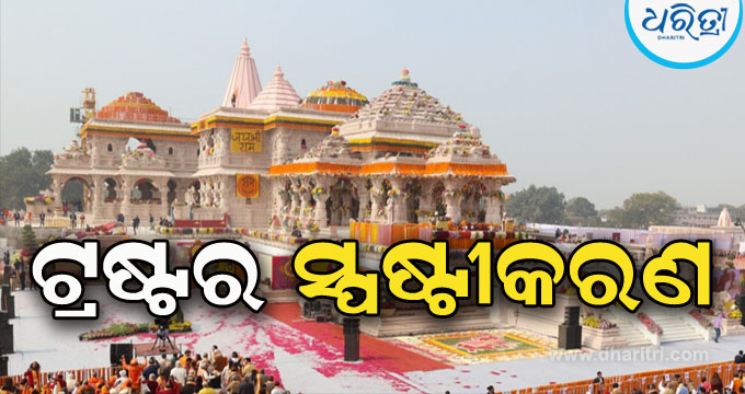 ଅଯୋଧ୍ୟା,୨୬ା୬: ଅଯୋଧ୍ୟା ରାମମନ୍ଦିରରେ ପାଣି ଲିକ୍ ଖବର ପରେ ବୁଧବାର ଟ୍ରଷ୍ଟ ପକ୍ଷରୁ ସ୍ପଷ୍ଟୀକରଣ ଦିଆଯାଇଛି। ଶ୍ରୀରାମ ଜନ୍ମଭୂମି ତୀର୍ଥକ୍ଷେତ୍ର ଟ୍ରଷ୍ଟ ପକ୍ଷରୁ ସୋସିଆଲ ମିଡିଆ ‘ଏକ୍ସ’ରେ ସ୍ପଷ୍ଟୀକରଣ ଦିଆଯାଇଛି। ରାମ ମନ୍ଦିର ଗର୍ଭଗୃହରେ ଟୋପାଏ ବି ପାଣି ପଡ଼ିନି ବୋଲି ଟ୍ରଷ୍ଟ କହିଛି। ରାମଲାଲାଙ୍କ ବିରାଜସ୍ଥଳରେ ପାଣି ପଡ଼ିନି କି ପାଣି ଭିତରକୁ ମଧ୍ୟ ଆସିନାହିଁ। ମନ୍ଦିର ପରିସରରେ ବର୍ଷାଜଳ ନିଷ୍କାସନ ପାଇଁ ଉତ୍ତମ ବ୍ୟବସ୍ଥା କରାଯାଇଛି।