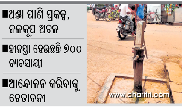 ଭୁବନ, ୧୩।୬(ଡି.ଏନ୍.ଏ.): ଢେଙ୍କାନାଳ ଜିଲା ଭୁବନ ବ୍ଲକ ଏନ୍ଏସିର ପୁରାତନ ବ୍ୟବସାୟିକ ପେଣ୍ଠସ୍ଥଳୀ ନୂଆବଜାରରେ ସୃଷ୍ଟି ହୋଇଛି ଜଳସଙ୍କଟ। ଦୀର୍ଘ ୧୦ବର୍ଷ ତଳେ ଏଠାରେ ସ୍ଥାପିତ ଥଣ୍ଡା ପାନୀୟ ଜଳ ପ୍ରକଳ୍ପ ଏବଂ ଏକମାତ୍ର ନଳକୂପ ଅଚଳ ହୋଇପଡ଼ିବା ପରେ ପାଣି ମୁନ୍ଦାଏ ପାଇଁ ଦହଗଞ୍ଜ ହେଉଛନ୍ତି ବ୍ୟବସାୟୀ, ଗ୍ରାହକ ଏବଂ ବସ୍ଯାତ୍ରୀ। ଏହାକୁ ନେଇ ପୁଞ୍ଜିଭୂତ ଅସନ୍ତୋଷ ଉଗ୍ର ହେଉଥିବାବେଳେ ଆନ୍ଦୋଳନ ଏକମାତ୍ର ବିକଳ୍ପ ବୋଲି ଖୋଲାଖୋଲି ଚେତାବନୀ ଦେଇଛନ୍ତି ବ୍ୟବସାୟୀ।