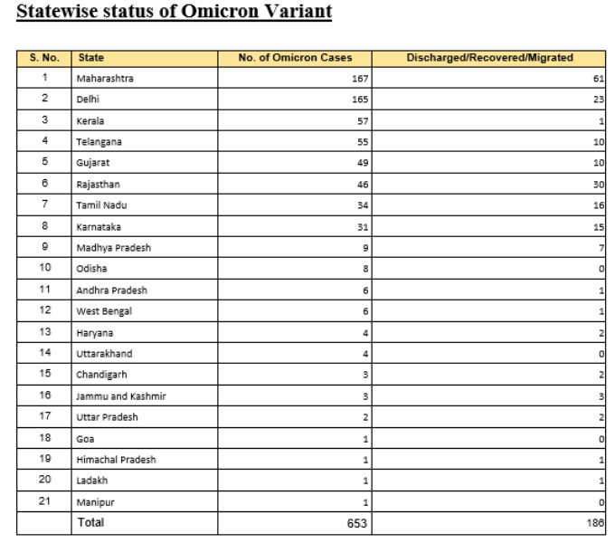 ଓମିକ୍ରନ୍‌ ଆକ୍ରାନ୍ତଙ୍କ ସଂଖ୍ୟା ୬୫୩ ଛୁଇଁଲା…