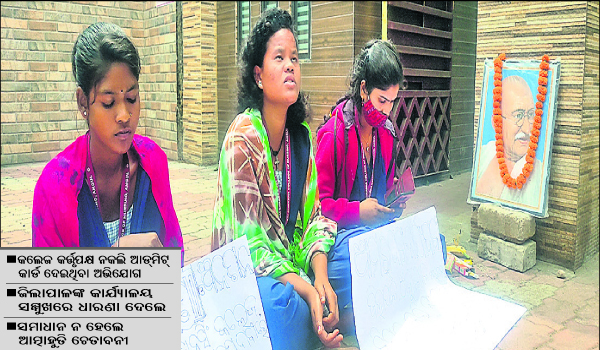 ଅନୁଗୋଳ ଅଫିସ,୧୮।୩: ଅନୁଗୋଳ ଜିଲା ଛେଣ୍ଡିପଦା ସାଇଶ୍ରଦ୍ଧା ନର୍ସିଂ କଲେଜରେ ପଢୁଥିବା ୨ୟ ବର୍ଷର ୭ ଜଣ ଛାତ୍ରୀ ପରୀକ୍ଷା ଦେବାରୁ ବଞ୍ଚିତ ହୋଇଛନ୍ତି। କଲେଜ କର୍ତ୍ତୃପକ୍ଷ ନକଲି ଆଡମିଡ୍ କାର୍ଡ ଦେଇଥିବାରୁ ଏଭଳି ସମସ୍ୟା ଉପୁଜିଥିବା ସେମାନେ ଅଭିଯୋଗ କରିଛନ୍ତି। ନ୍ୟାୟ ଦାବିରେ ସମ୍ପୃକ୍ତା ଛାତ୍ରୀମାନେ ଶୁକ୍ରବାର ଜିଲାପାଳଙ୍କ କାର୍ଯ୍ୟାଳୟ ସମ୍ମୁଖରେ ଧାରଣା ଦେଇଥିଲେ। ଆସନ୍ତା ୨୭ ତାରିଖରେ ଜିଲାପାଳଙ୍କ ଜନ ଅଭିଯୋଗ ଶୁଣାଣି ଶିବିରରେ ଏହାର ସମାଧାନ କରାଯିବ ବୋଲି ପ୍ରଶାସନିକ ପ୍ରତିଶ୍ରୁତି ମିଳିବା ପରେ ଛାତ୍ରୀମାନେ ଧାରଣାରୁ ଓହରିଛନ୍ତି। ଯଦି ସମସ୍ୟାର ସମାଧାନ ନ ହୁଏ, ତେବେ ସମସ୍ତ ଛାତ୍ରୀ ଆତ୍ମାହୁତି ଦେବେ ବୋଲି ଚେତାବନୀ ଦେଇଛନ୍ତି।