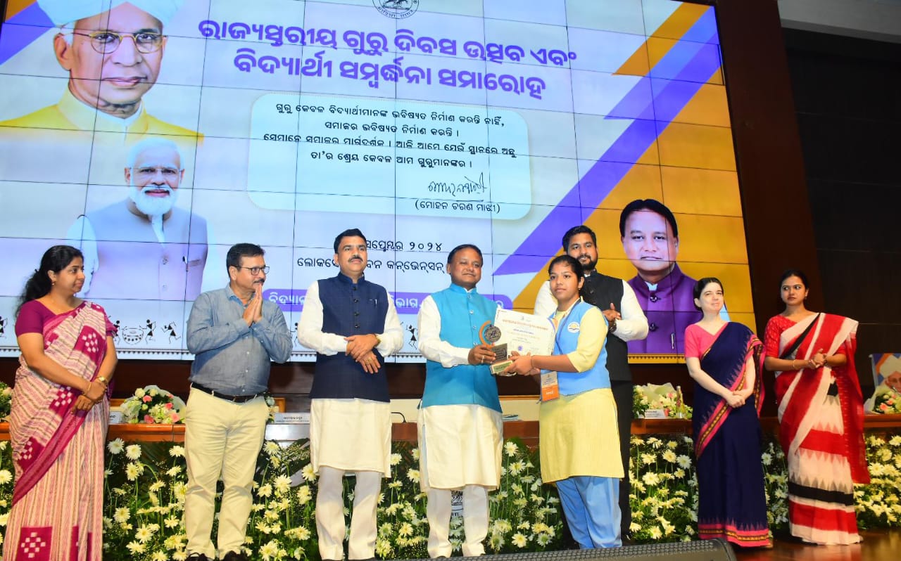 ଭୁବନେଶ୍ୱରସ୍ଥିତ ଲୋକସେବା ଭବନ କନ୍ଭେନସନ ସେଣ୍ଟରରେ ଆୟୋଜିତ ରାଜ୍ୟସ୍ତରୀୟ ଗୁରୁ ଦିବସ ଉତ୍ସବ ଓ ବିଦ୍ୟାର୍ଥୀ ସମ୍ବର୍ଦ୍ଧନା ସମାରୋହ ପାଳନ ଅବସରରେ ଯୋଗ ଦେଇଛନ୍ତି ମୁଖ୍ୟମନ୍ତ୍ରୀ ମୋହନ ଚରଣ ମାଝୀ