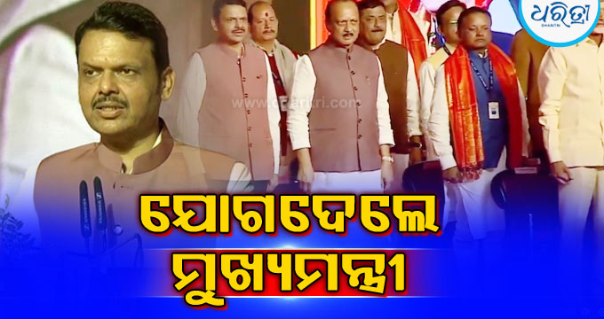 ମୁମ୍ବାଇ,୫ା୧୨: ମହାରାଷ୍ଟ୍ରର ମୁଖ୍ୟମନ୍ତ୍ରୀ ଭାବେ ଶପଥ ଗ୍ରହଣ କରିଛନ୍ତି ଦେବେନ୍ଦ୍ର ଫଡନାଭିସ। ରାଜ୍ୟ ବିଧାନସଭା ନିର୍ବାଚନରେ ଭାଜପା ଏବଂ ଏହାର ସହଯୋଗୀ ଦଳ ବିଜୟ ଲାଭ କରିବା ମୁଖ୍ୟମନ୍ତ୍ରୀ ଇଏ ହେବ ସେ ନେଇ କଳ୍ପନା ଜଳ୍ପନା ଲାଗି ରହିଥିଲା। ଶେଷରେଫଡନାଭିସ ମୁଖ୍ୟମନ୍ତ୍ରୀ ହୋଇଛନ୍ତି। ଏହି ଶପଥ ଗ୍ରହଣ କାର୍ଯ୍ୟକ୍ରମରେ ପ୍ରଧାନମନ୍ତ୍ରୀ ନରେନ୍ଦ୍ର ମୋଦି, ସ୍ଵରାଷ୍ଟ୍ରମନ୍ତ୍ରୀ ଅମିତ ଶାହ ଏବଂ ଭାଜପା ମୁଖ୍ୟ ଜେପି ନଡାଙ୍କ ସମେତ ଭାଜପା ଶାସିତ ରାଜ୍ୟର ମୁଖ୍ୟମନ୍ତ୍ରୀମାନେ ମଧ୍ୟ ଯୋଗ ଦେଇଛନ୍ତି।