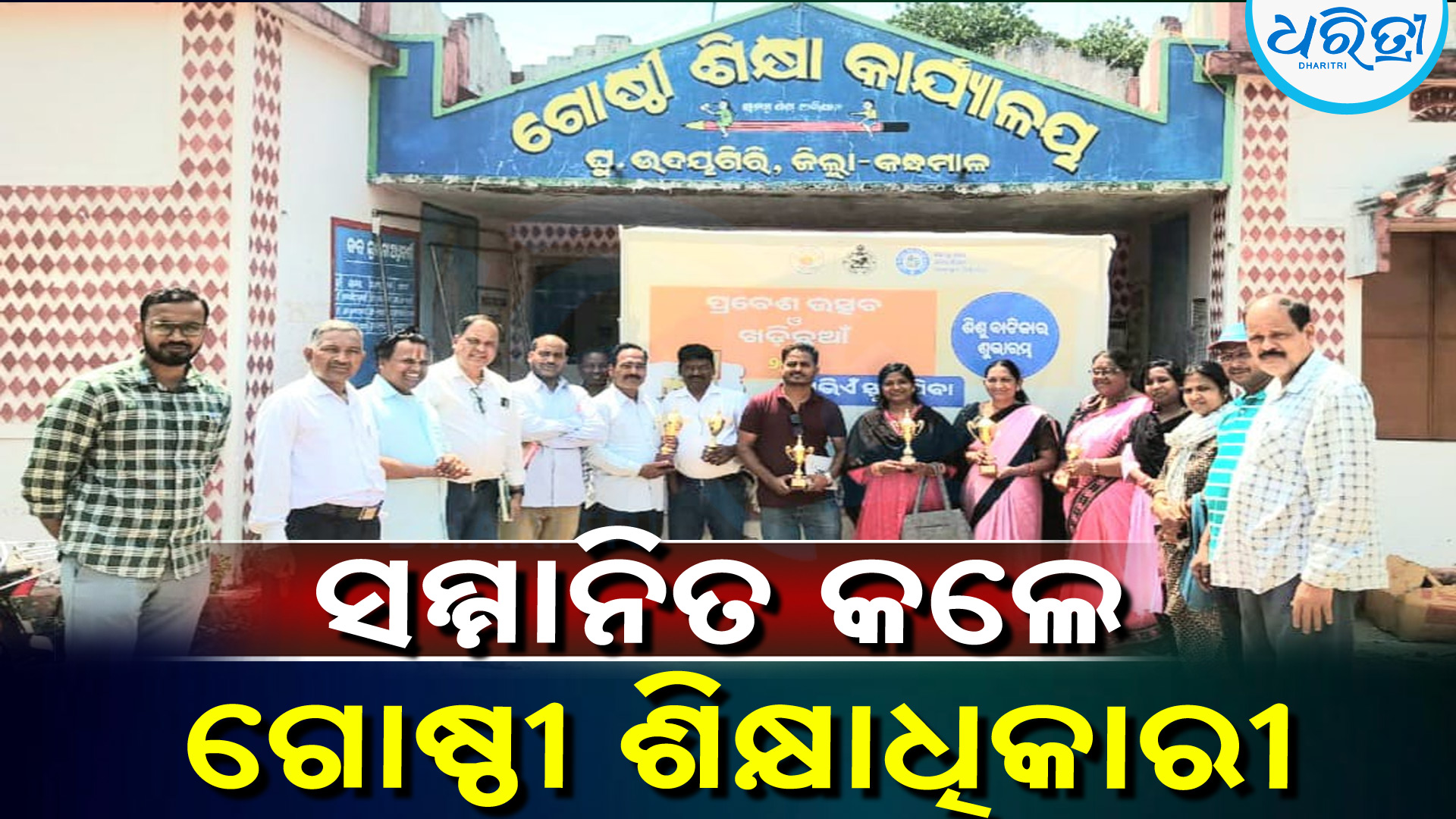 ଜି.ଉଦୟଗିରି,୮ା୪ (ଚିନ୍ମୟ କୁମାର ସେଠୀ): ଜି.ଉଦୟଗିରି ବିଜ୍ଞାପିତ ଅଞ୍ଚଳ ପରିଷଦ ଅନ୍ତର୍ଗତ ଗୋଷ୍ଠୀ ଶିକ୍ଷାଧିକାରୀଙ୍କ କାର୍ଯ୍ୟାଳୟ ଠାରେ ନୂଆ ବିଦ୍ୟାର୍ଥୀ ପ୍ରବେଶ ଉତ୍ସବ ଓ ଖଡ଼ି ଛୁଆ ପାଇଁ ଶିକ୍ଷା ସଚେତନତା ରଥ ଭ୍ରମଣର କାର୍ଯ୍ୟକ୍ରମ ସ୍ଥାନୀୟ ଗୋଷ୍ଠୀ ଶିକ୍ଷା ଅଧିକାରୀ ଦିବ୍ୟ ପ୍ରକାଶ ପ୍ରଧାନଙ୍କ ନେତୃତ୍ୱରେ ୨ତାରିଖରୁ ଆରମ୍ଭ ହୋଇଥିଲା। ଉକ୍ତ ପ୍ରବେଶ ଉତ୍ସବ ଓ ଖଡ଼ି ଛୁଆଁ କାର୍ଯ୍ୟକ୍ରମକୁ ବିଭିନ୍ନ ବିଦ୍ୟାଳୟ ଗୁଡ଼ିକ ଭଲଭାବରେ ସ୍ବାଗତ ସମ୍ବର୍ଦ୍ଧନା କରିଥିବାରୁ ଜି.ଉଦୟଗିରି ବ୍ଲକର ୩ଟି ବିଦ୍ୟାଳୟ ଯଥା ରାବା ନାଜୁ ପ୍ରାଥମିକ ବିଦ୍ୟାଳୟ,ରାଇପଲିି ଉନ୍ନୀତ ପ୍ରାଥମିକ ବିଦ୍ୟାଳୟ ବାକିକାମା ପ୍ରାଥମିକ ବିଦ୍ୟାଳୟକୁ ଗୋଷ୍ଠୀ ଶିକ୍ଷା ଅଧିକାରୀଙ୍କ ତରଫରୁ ସମ୍ମାନିତ କରାଯାଇଛି।