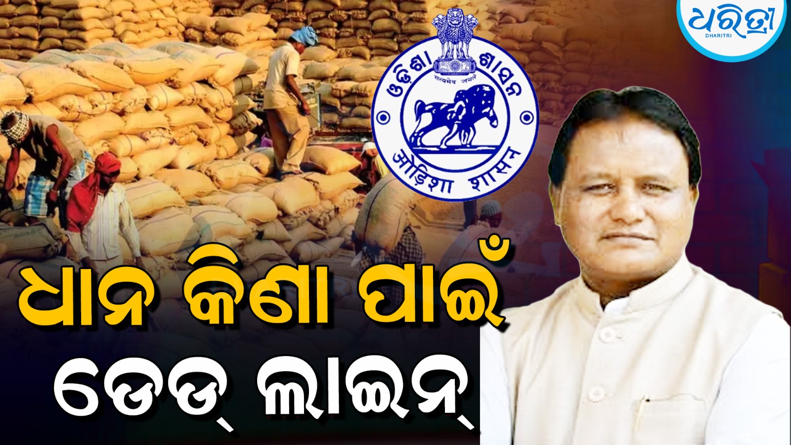 ଭୁବନେଶ୍ୱର,୨୫ା୨: ରାଜ୍ୟରେ ସରକାରଙ୍କ ପକ୍ଷରୁ ଧାନ କିଣା ଜାରି ରହିଛି। ଏହାରି ମଧ୍ୟରେ ସରକାର ସମୟସୀମା ଧାର୍ଯ୍ୟ କରିଛନ୍ତି। ଆସନ୍ତା ମାର୍ଚ୍ଚ ୩୧ ଡେଡ୍ ଲାଇନ୍ ଧାର୍ଯ୍ୟ କରିଛନ୍ତି ସରକାର। ମଙ୍ଗଳବାର ଯୋଗାଣ ମନ୍ତ୍ରୀ କୃଷ୍ଣ ଚନ୍ଦ୍ର ପାତ୍ର ଦେଇଥିବା ସୂଚନା ଅନୁଯାୟୀ ବର୍ତ୍ତମାନ ସୁଦ୍ଧା ୬୫ ଲକ୍ଷ ମେଟ୍ରିକ ଟନ୍ ଧାନ ସଂଗ୍ରହ କରିସାରିଛନ୍ତି।
