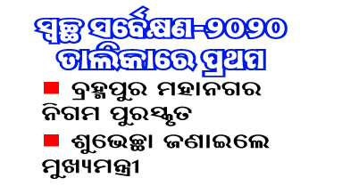 ଭୁବନେଶ୍ୱର,୨୧ା୮(ବ୍ୟୁରୋ):ସମସ୍ତ ରାଜ୍ୟକୁ ପଛରେ ପକାଇ ଓଡ଼ିଶା ସ୍ବଚ୍ଛ ସର୍ବେକ୍ଷଣ-୨୦୨୦ରେ ଦ୍ରୁତ ଅଗ୍ରଗାମୀ ରାଜ୍ୟ ତାଲିକାରେ ପ୍ରଥମ ସ୍ଥାନ ହାସଲ କରି ପୁରସ୍କୃତ ହୋଇଛି। ପ୍ରଧାନମନ୍ତ୍ରୀ ନରେନ୍ଦ୍ର ମୋଦି ଗୁରୁବାର ଏହି ଘୋଷଣା କରିଛନ୍ତି। କଠିନ ବର୍ଜ୍ୟବସ୍ତୁ ଓ ବର୍ଜ୍ୟଜଳ ପରିଚାଳନା କ୍ଷେତ୍ରରେ ଉଲ୍ଲେଖନୀୟ କାର୍ଯ୍ୟ ପାଇଁ ଓଡ଼ିଶାକୁ ଏହି ସଫଳତା ମିଳି ପାରିଛି। ସେହିପରି ବ୍ରହ୍ମପୁର ମହାନଗର ନିଗମକୁ ମଧ୍ୟମ ବର୍ଗରେ ଅଭିନବ ଯୋଜନା ନିମନ୍ତେ ପୁରସ୍କୃତ କରାଯାଇଛି।