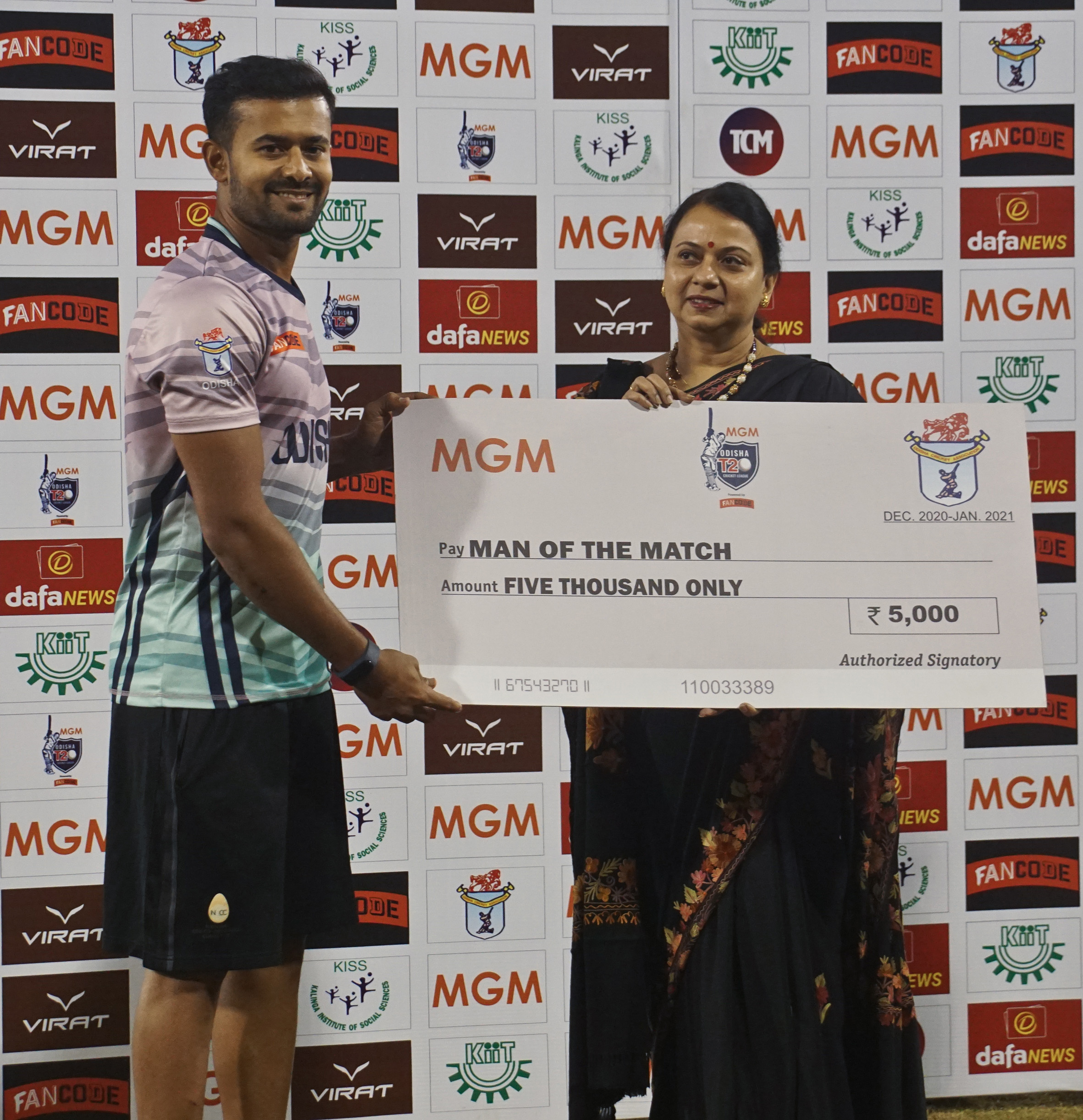 ଟସ୍ ଜିତି ପ୍ରଥମେ ବ୍ୟାଟିଂ କରିଥିବା ଚିତାସ ତରଫରୁ ଅଭିଷେକ ସର୍ବାଧିକ ୪୯ ରନ୍ ସଂଗ୍ରହ କରିଥିଲେ। ଅନ୍ୟମାନଙ୍କ ମଧ୍ୟରେ ଅଧିନାୟକ ଅନୁରାଗ ଷଡ଼ଙ୍ଗୀ ୨୬, ବାଦଲ ଭୋଳ ୧୧ ରନ ସଂଗ୍ରହ କରି ଆଉଟ ହୋଇଥିଲେ। କୋରାପୁ ସନ୍ଦୀପ ୧୨ ରନ କରି ଅପରାଜିତ ରହିଥିବା ବେଳେ ଅନ୍ୟମାନେ ଦୁଇଅଙ୍କ ଛୁଇଁ ପାରି ନ ଥିଲେ। ବୋଲିଂରେ ଲାୟନ୍ସ ପକ୍ଷରୁ ଶିବାଶିଷ ସାହୁ ସର୍ବାଧିକ ୩, ଦୀପକ ରଞ୍ଜନ ବେହେରା ଓ ବିକାଶ ରାଉତ ଗୋଟିଏ ଲେଖାଏ ଉଇକେଟ ଅକ୍ତିଆର କରିଥିଲେ। ଅସିତ ପାଲ, ଶତର ଚନ୍ଦ୍ର ସାହୁ ଫିଲ୍ଡ ଅମ୍ପାୟର ଭାବେ ମ୍ୟାଚ ପରିଚାଳନା କରିଥିଲେ। ଅମିତ ଅମିତାଭ ମହାକୁଡ ତୃତୀୟ ଅମ୍ପାୟର, ସ୍କୋରର ଭାବେ ରଶିରଞ୍ଜନ ମଲ୍ଲ ଓ ବୀରବର ନାଏକ ଦାୟିତ୍ୱ ତୁଲାଇଥିଲେ।