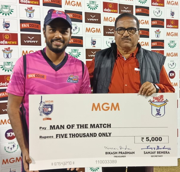 ପ୍ରଥମେ ବ୍ୟାଟିଂ କରିଥିବା ଟାଇଗର୍ସ ତରଫରୁ ଦେବାଶିଷ ସର୍ବାଧିକ ଅପରାଜିତ ୪୯, ଅମିନ ଖାଁ ୪୫, ଦିବ୍ୟଶକ୍ତି ଚକ୍ରବର୍ତ୍ତୀ ୧୧, ରାକେଶ ଗୋଛାୟତ ୧୭ ରନ ସଂଗ୍ରହ କରିଥିଲେ। ହର୍ଶିତ ରାଠୋର ୨୨ ରନ କରି ଅପରାଜିତ ରହିଥିଲେ। ବୋଲିଂରେ ଚିତାସ ତରଫରୁ ଅଭିଜିତ ହୋତା, ମନୋଜ ବାରିକ, ଅନୁରାଗ ଓ ଅଭିଷେକ ରାଉତ ଗୋଟିଏ ଲେଖାଏ ଉଇକେଟ ହାସଲ କରିଥିଲେ।