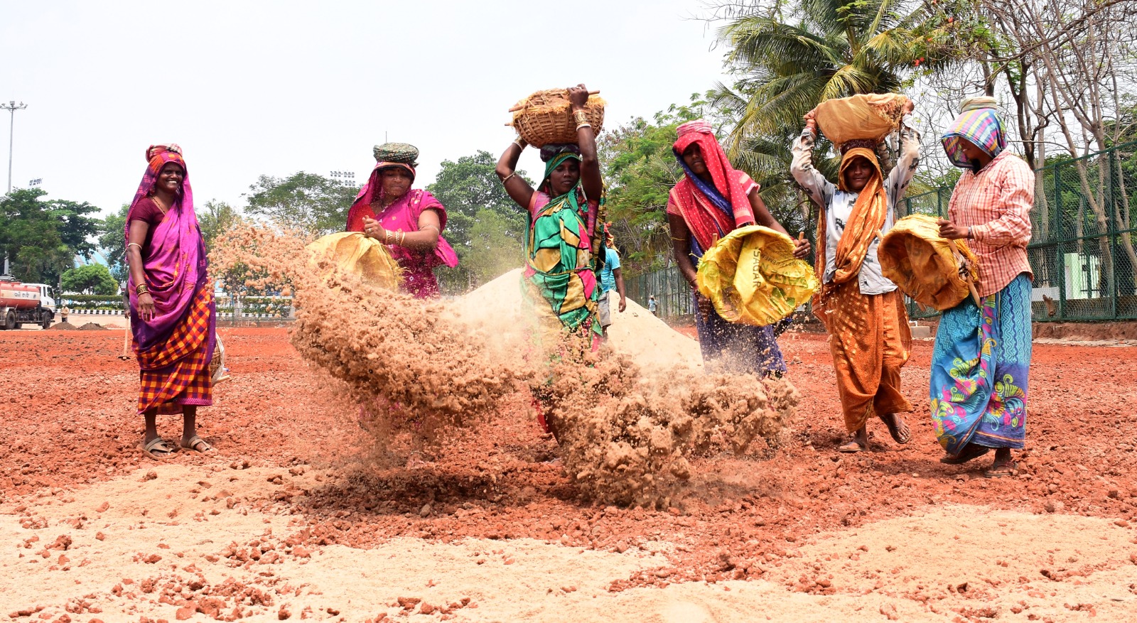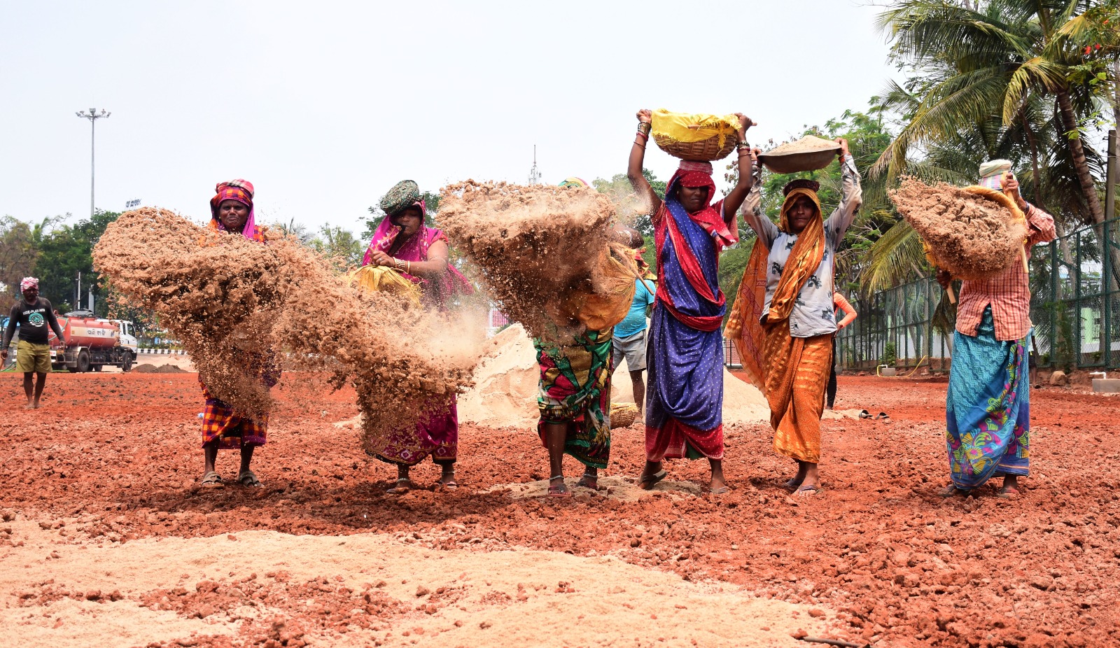 ଶ୍ରମିକ ମାନେ କାର୍ଯ୍ୟ କରୁଥିବାର ଦୃଶ୍ୟ