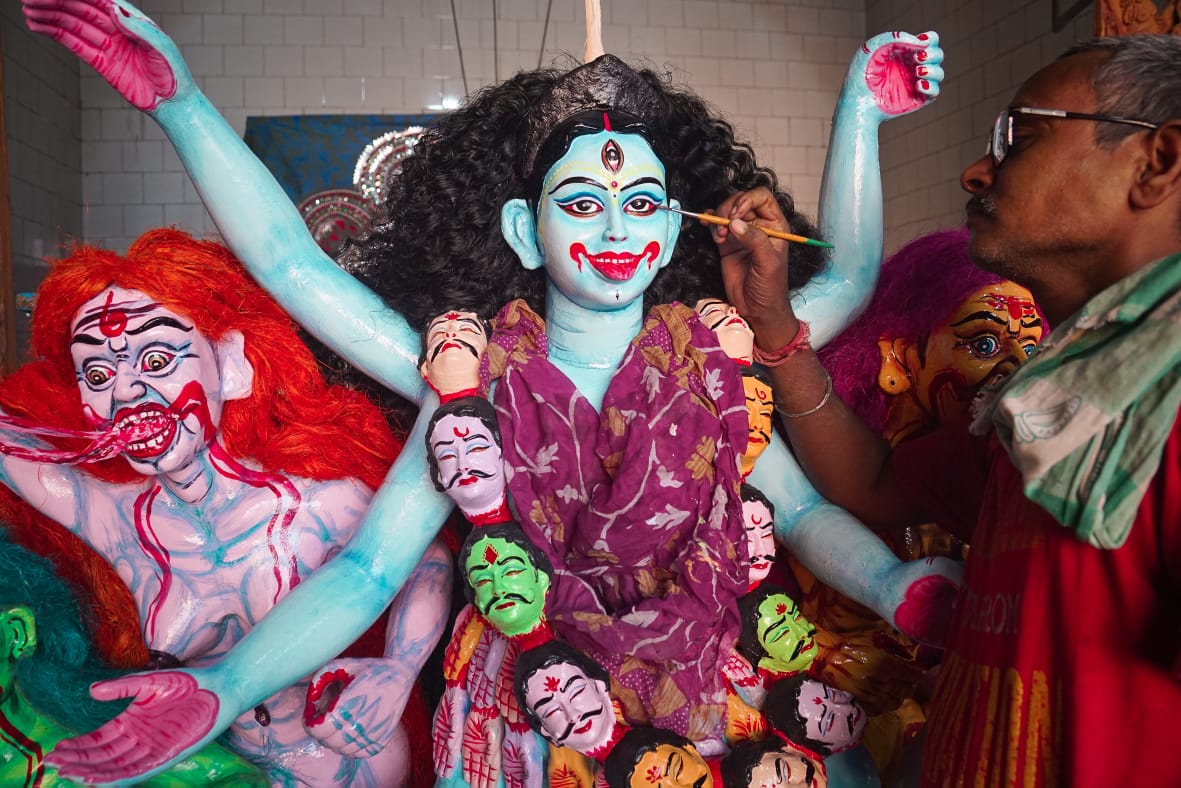 କଟକ ରାଣୀହାଟ ପୂଜାମଣ୍ଡପରେ ଶ୍ୟାମା କାଳୀଙ୍କ ପ୍ରତିମାକୁ କଳାକାର ଶେଷ ସ୍ପର୍ଶ ଦେଉଛନ୍ତି