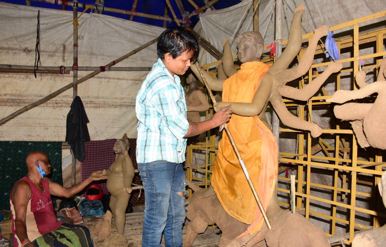ଭୁବନେଶ୍ୱର ପାଣ୍ଡରାରେ ମା’ ଦୁର୍ଗାଙ୍କ ପ୍ରତିମା ଗଢୁଛନ୍ତି ଶିଳ୍ପୀ
