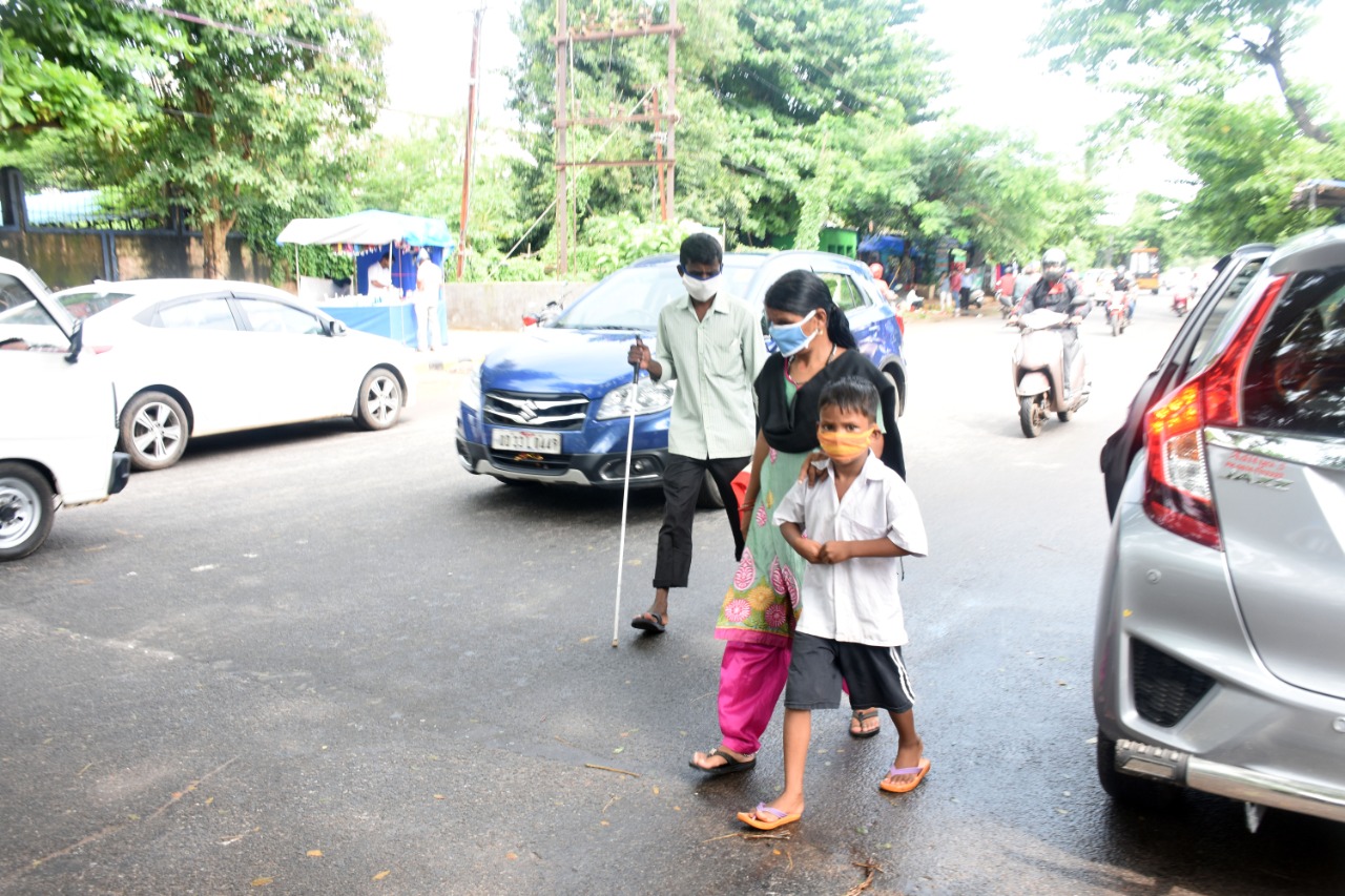 ଜଣେ ଶିଶୁ ତାଙ୍କର ଦୃଷ୍ଟିହୀନ ପିତାମାତାଙ୍କୁ ଭୁବନେଶ୍ୱରର ସତ୍ୟ ନଗର ଠାରେ ରାସ୍ତା ପାର କରିବାରେ ସାହାଯ୍ୟ କରୁଛି
