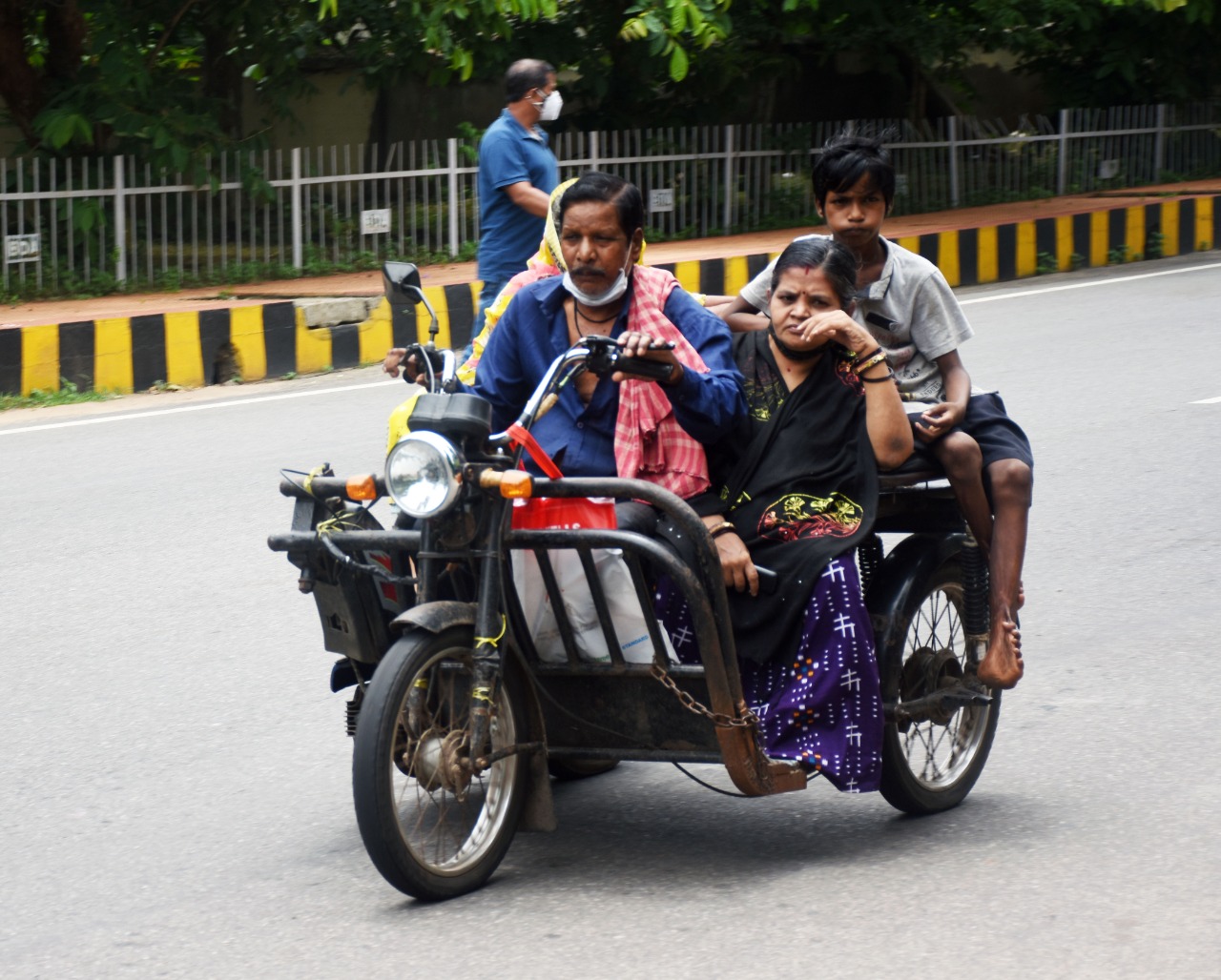 ଜଣେ ଶାରୀରିକ ଅକ୍ଷମ ବ୍ୟକ୍ତି ଭୁବନେଶ୍ୱରର ୧୨୦ ବାଟାଲିଅନ୍ ରାସ୍ତାରେ ନିଜ ପରିବାର ସହିତ ଯାଉଛନ୍ତି