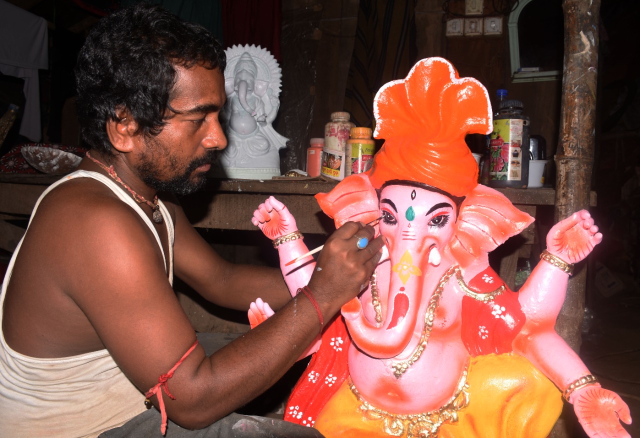 ଭୁବନେଶ୍ୱରର ଓ଼ଲ୍ଦଟାଉନ ଠାରେ ଭଗବାନ ଗଣେଶଙ୍କ ମାଟି ପ୍ରତିମାକୁ ଜଣେ କାରିଗର ଅନ୍ତିମ ସ୍ପର୍ଶ ଦେଉଛନ୍ତି