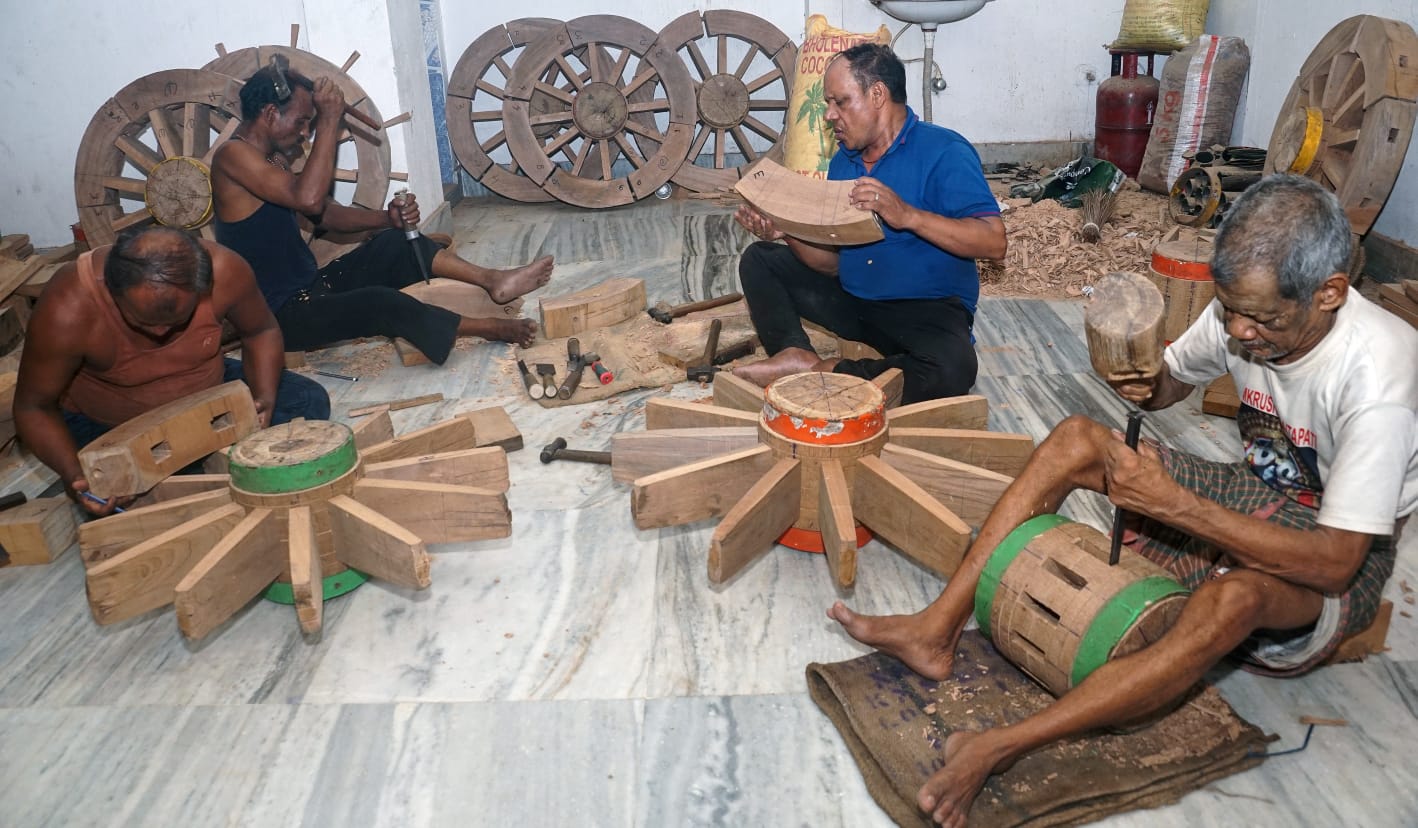 ଶ୍ରୀ ଲିଙ୍ଗରାଜ ଶିବ ବିବାହ ପାଇଁ ଶୋଭାଯାତ୍ରାରେ ଯାଉଛନ୍ତି କଟକ ଚାନ୍ଦିନୀ ଚୌକ ଜଗନ୍ନାଥ ମନ୍ଦିର ଠାରେ ରଥ ଯାତ୍ରା ପାଇଁ ରଥ ଚକ ଗୁଡିକ ନିର୍ମାଣ ଚାଲିଛି କଟକ ଗଡ ଗଡ଼େଶ୍ୱର ମନ୍ଦିର ନିକଟରୁ ପବିତ୍ର ଶୀତଳ ଷଷ୍ଠୀ ଅବସରରେ ବାହାରିଥିବା ରୋଷଣୀ ଶୋଭାଯାତ୍ରା