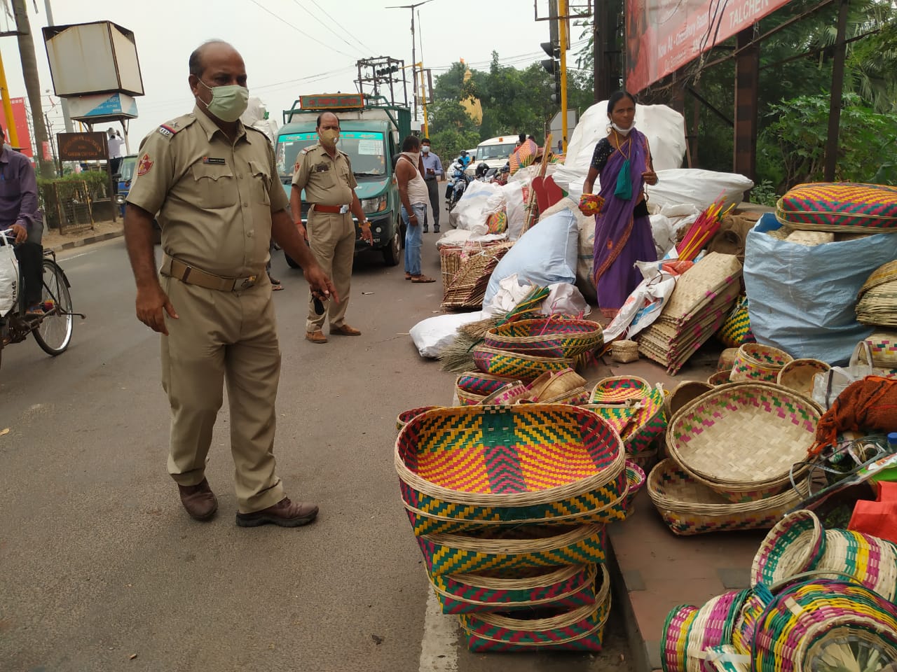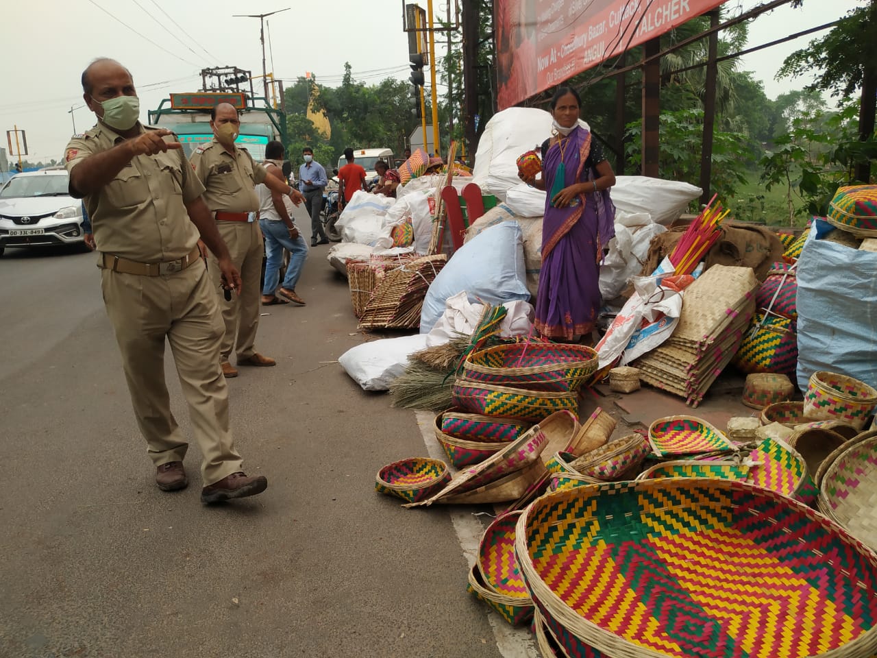 ଖାନଗର ମଳଚଣ୍ଡିଆଛକ ରାସ୍ତାକଡରେ ବାଉଁଶଜାତ ଗୃହଉପକରଣ ସାମଗ୍ରୀ ବିକ୍ରୟ ପାଇଁ ବସିଥିବା ଉଠାବ୍ୟବସାୟୀ ଙ୍କୁ ପୋଲିସ ଉଠାଉଛନ୍ତି