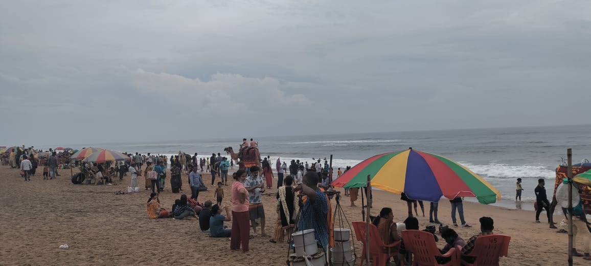 ପୂଜା ଅବସର ରେ ପୁରୀ ବେଳାଭୂମି ର ମଜାନେଉଛନ୍ତି ପର୍ଯ୍ୟଟକ