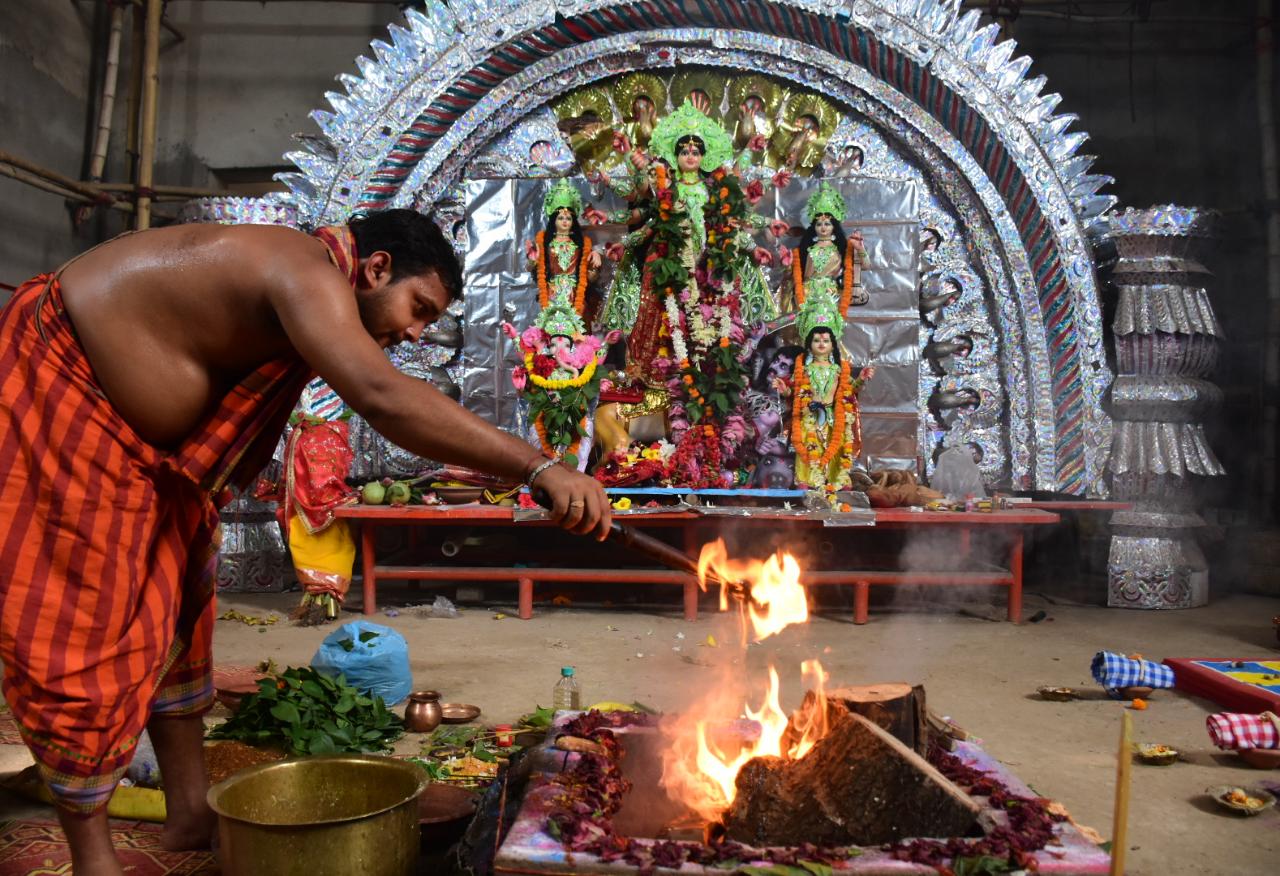 ନୟାପଲ୍ଲୀ ଦୁର୍ଗାପୂଜା ମଣ୍ଡପଠାରେ ଦେବୀ ମା ଦୁର୍ଗାଙ୍କର ନବମୀ ପୂଜା ହେଉଛି