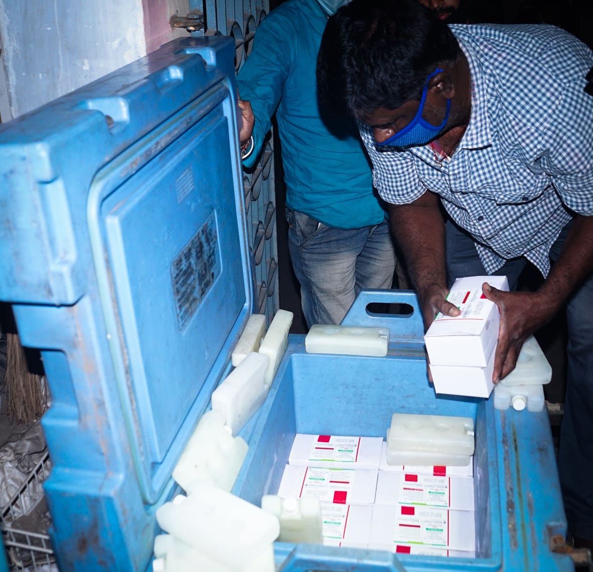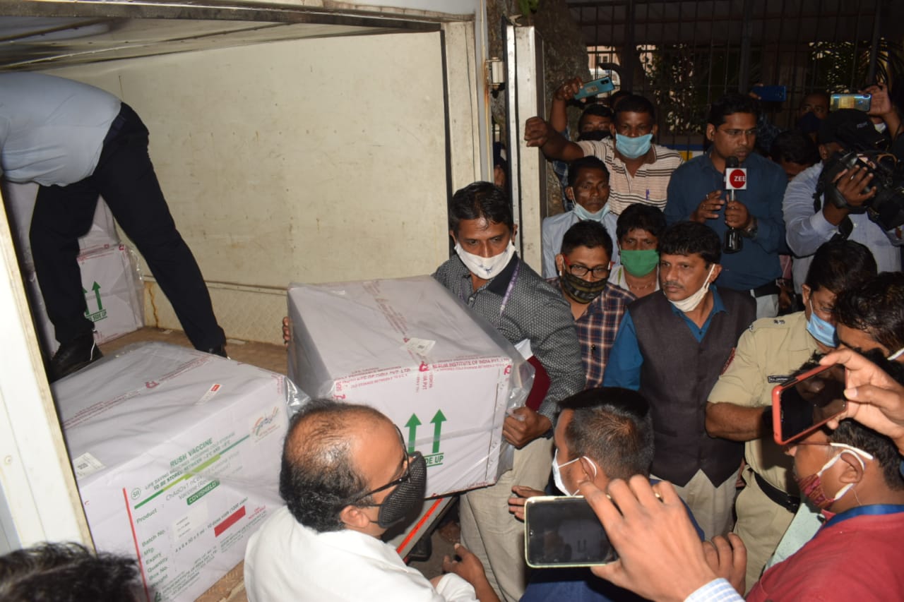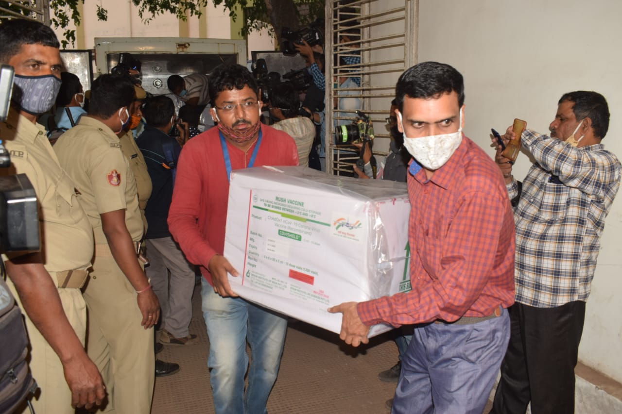 କରୋନା ଟିକା ଭୁବନେଶ୍ୱର ବିମାନ ବନ୍ଦରରୁ କଡା ସୁରକ୍ଷା ମଧ୍ୟରେ ନିଆଯାଉଛି କରୋନା ଟିକା ଭୁବନେଶ୍ୱରରେ ପହଞ୍ଚିବା ପରେ ଓଡିଶା ରାଜ୍ୟ ଔଷଧ ନିଗମରେ ରଖାଯାଉଛି କଟକ ସିଟି ହସ୍ପିଟାଲରେ କରୋନା ଟିକା ପହଞ୍ଚିଛି