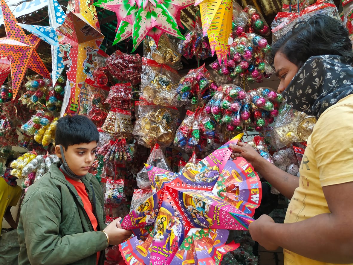 କଟକ ଚୌଧୁରୀବଜ଼ାରର ଦୋକାନରୁ ଖ୍ରୀଷ୍ଟମାସ ସାମଗ୍ରୀ କିଣୁଛନ୍ତି ବାଳକ
