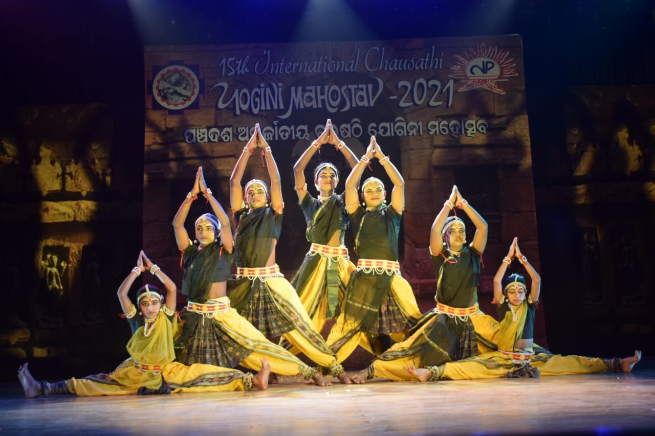 ଭୁବନେଶ୍ୱରର ରବୀନ୍ଦ୍ର ମଣ୍ଡପରେ ୧୫ ତମ ଆନ୍ତର୍ଜାତୀୟ ଚଉଷଠି ଯୋଗିନୀ ମହୋତ୍ସବରେ କଳାକାରମାନେ ‘ଗୋଟିପୁଆ ନୃତ୍ୟ’ ପ୍ରଦର୍ଶନ କରୁଛନ୍ତି