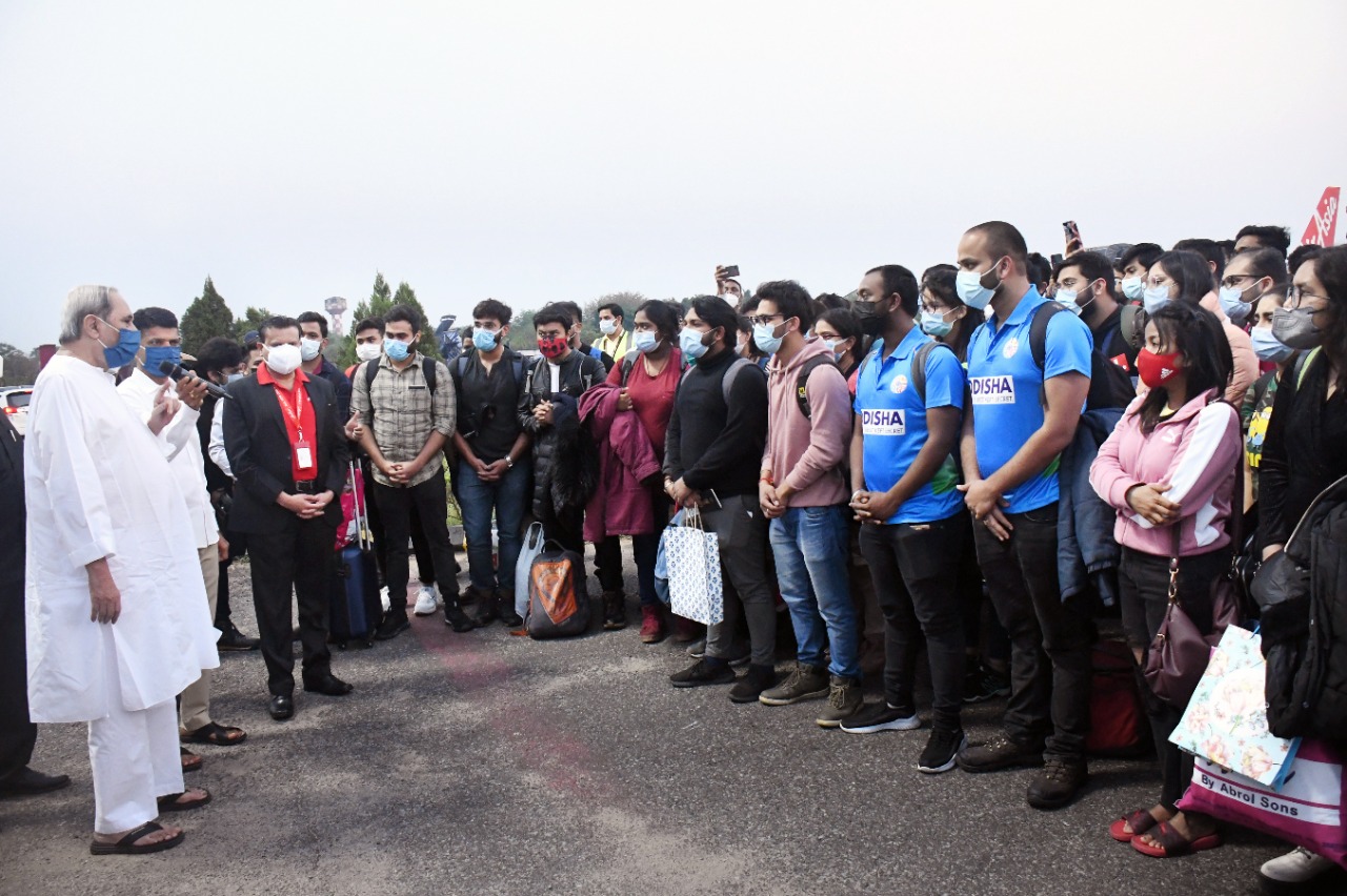 ୟୁକ୍ରେନ ରୁ ଫେରିଥିବା ୭୭ଜଣ ଡାକ୍ତରୀ ଛାତ୍ରୀ ଛାତ୍ର ଙ୍କୁ ବିଜୁ ପଟ୍ଟନାୟକ ବିମାନ ବନ୍ଦରରେ ମୁଖ୍ୟମନ୍ତ୍ରୀ ନବୀନ ପଟ୍ଟନାୟକ ସ୍ୱାଗତ ସମ୍ବର୍ଧନା ଜଣାଉଛନ୍ତି