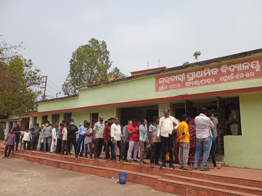 ଝାରପଡା ପ୍ରାଥମିକ ବିଦ୍ୟାଳୟ ରେ ଲୋକମାନେ ଭୋଟ ଦେବାପାଇଁ ଧାଡି କରିଛନ୍ତି