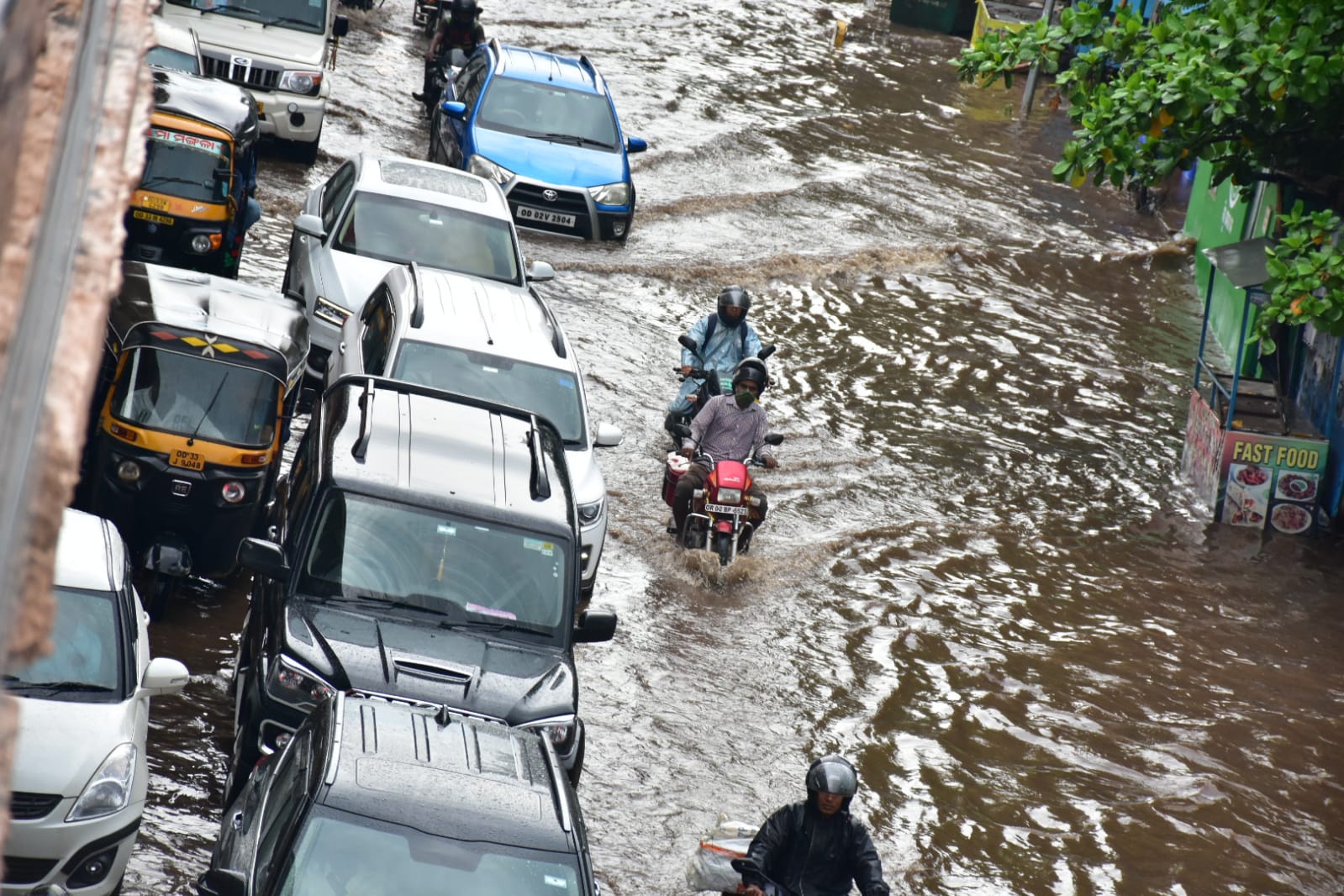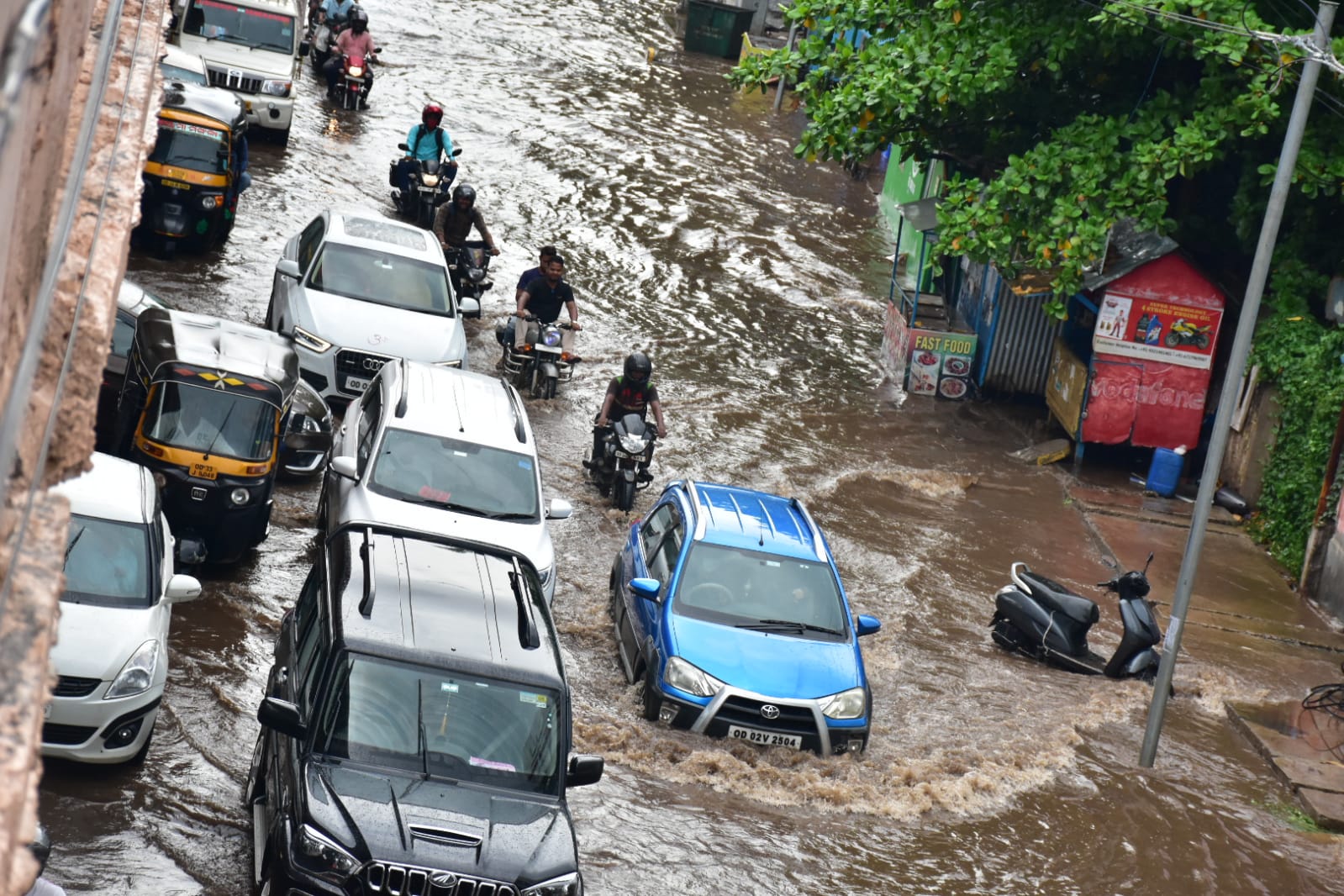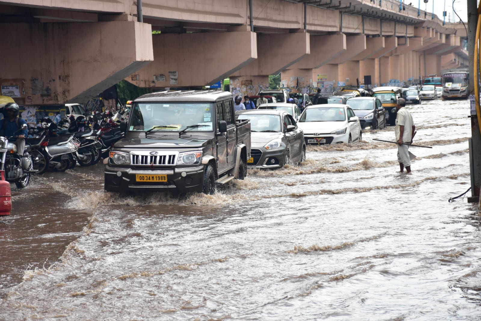 ରାଜଧାନୀରେ ପ୍ରବଳ ବର୍ଷା ପିଏମଜି ଛକ ର ମୁଖ୍ୟ ରାସ୍ତାରେ ପାଣି, ବିକ୍ଷବକାରି ମାନେ ମୁଣ୍ଡରେ ଛତା ଓ ବ୍ୟାନର ଧରି ଛିଡାହୋଇଛନ୍ତି