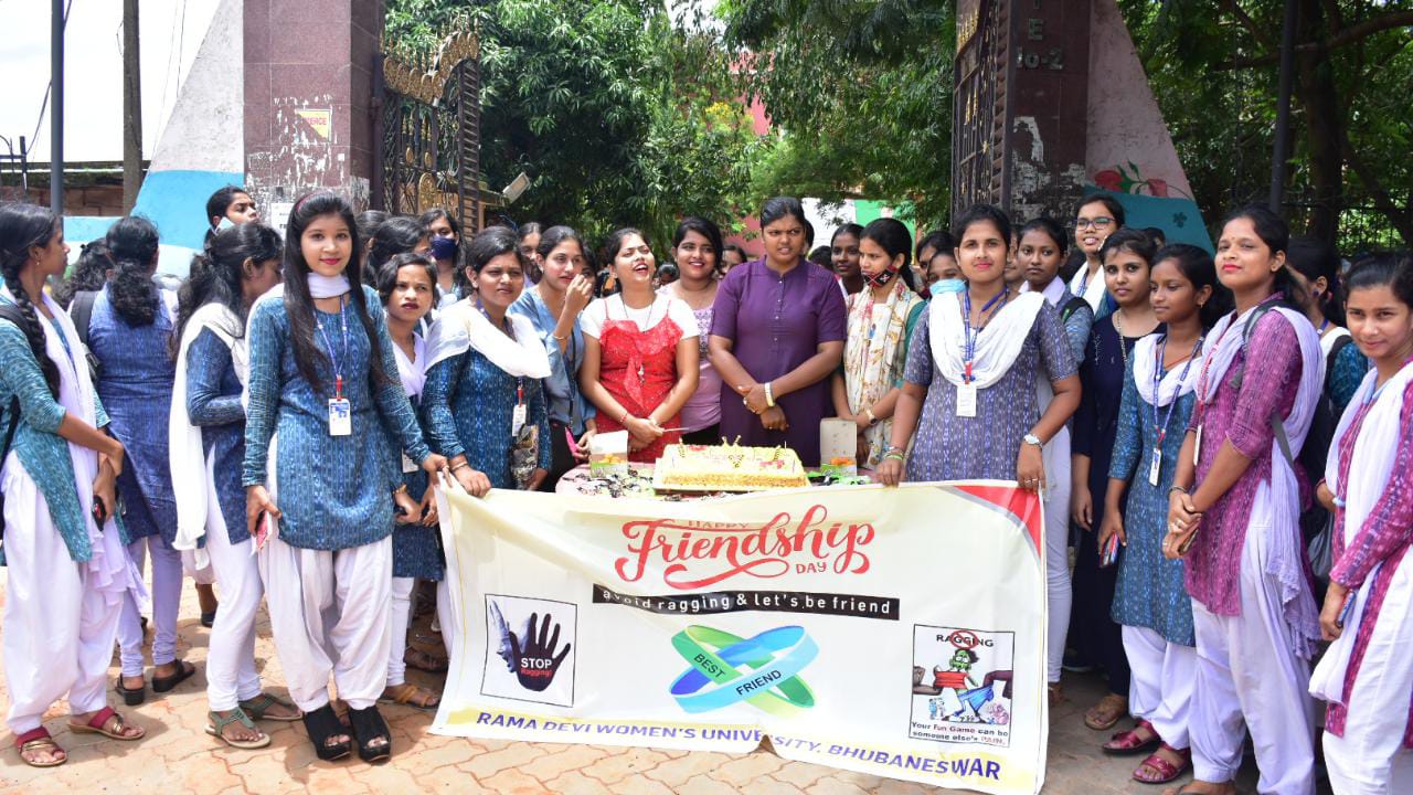 ସୋମବାର ରମା ଦେବୀ ବିଶ୍ୱବିଦ୍ୟାଳୟର ଅନୁଷ୍ଠାନ ପରିସରରେ ଛାତ୍ରୀମାନେ ବନ୍ଧୁତା ଦିବସ ପାଳନ କରୁଛନ୍ତି