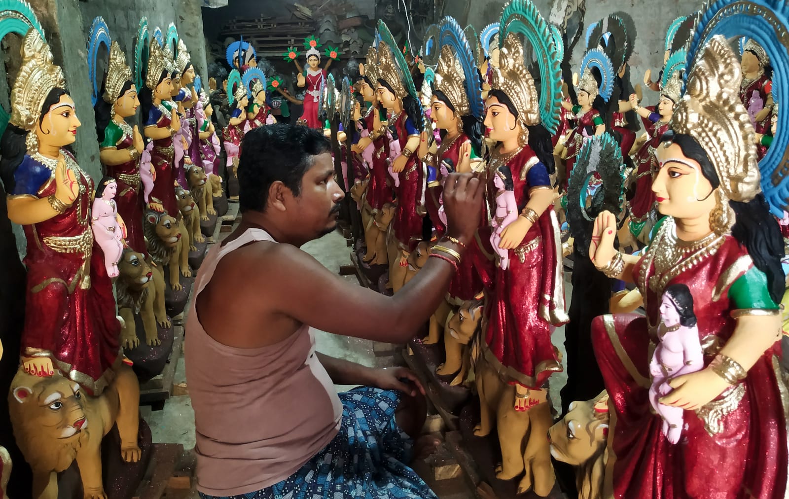ଶିଳ୍ପୀ କୁମ୍ଭାର ସାହୀ ଅଞ୍ଚଳରେ ଖୁଦୁରୁକୁଣୀ ମୁର୍ମୟୀ ପ୍ରତିମାରେ ରଙ୍ଗ ତୁଳିର ଶେଷ ସ୍ପର୍ଶ ଦେଉଛନ୍ତି