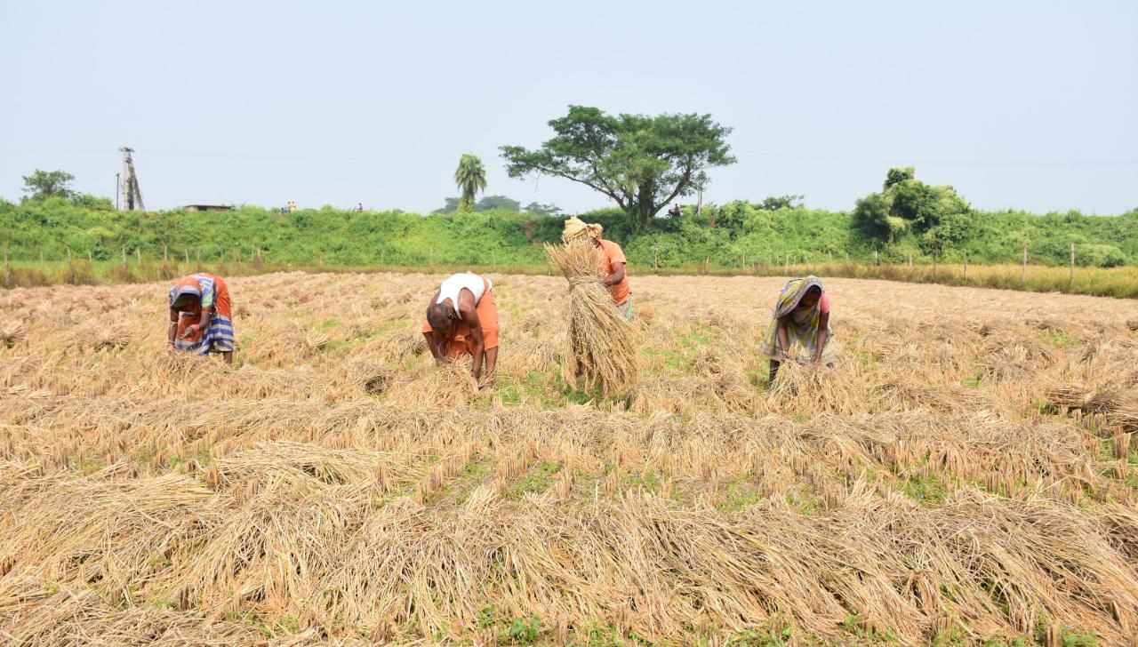 ଭୁବନେଶ୍ୱର ଉପକଣ୍ଠରେ କୃଷକମାନେ ଧାନ ଅମଳ କରିବାରେ ଲାଗି ପଡିଛନ୍ତି