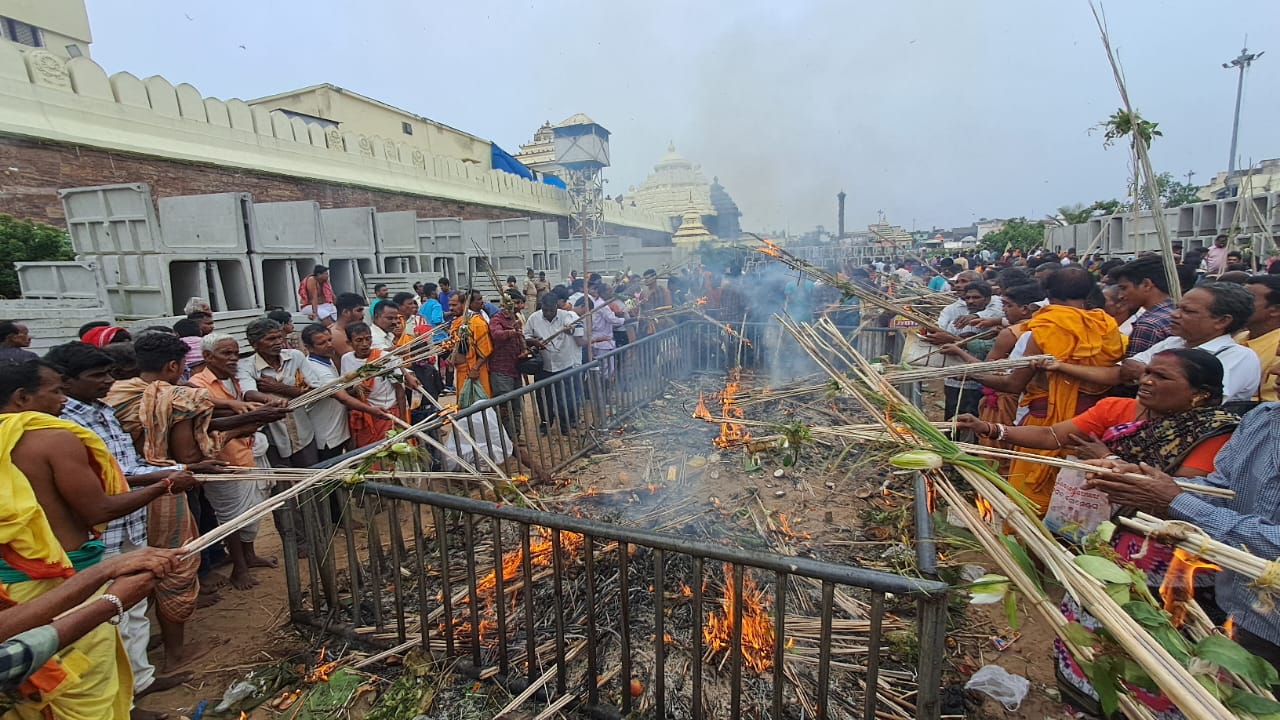 ଶ୍ରୀମନ୍ଦିର ସମ୍ମୁଖ ରେ ଶ୍ରଦ୍ଧାଳୁ ମାନେ ପିତୃପୁରୁଷ ଉଦ୍ଦେଶ୍ୟ ରେ କାଉଁରିଆ ଜାଳି ଶ୍ରାଦ୍ଧ ତର୍ପଣ କରୁଛନ୍ତି