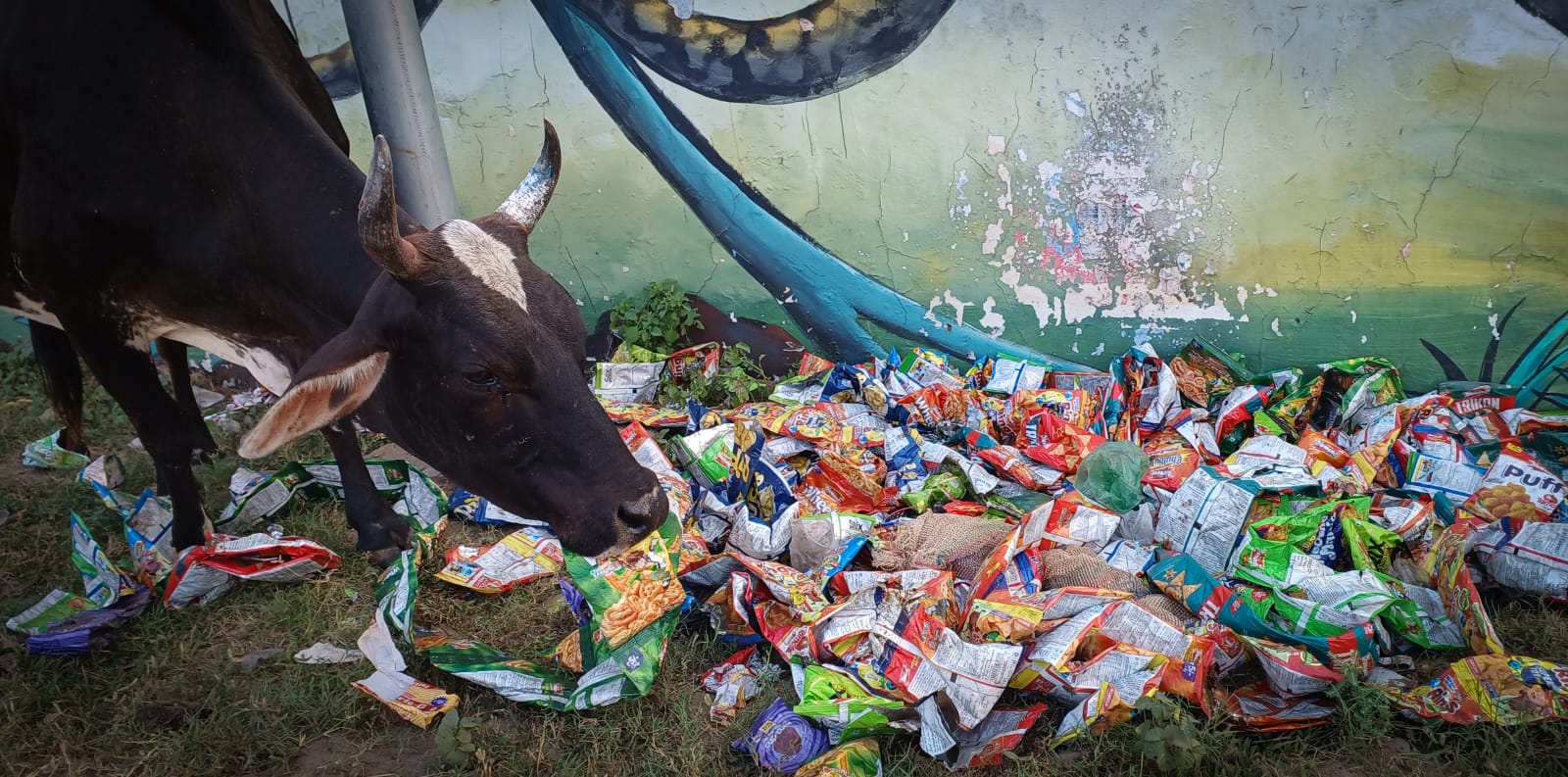 ଏକ୍ସପ୍ୟାରୀ ହୋଇ ଥିବା ଖାଦ୍ୟ ପ୍ୟାକେଟ କୁ ଶିଶୁ ଭବନ ରିଙ୍ଗ ରୋଡ ପାର୍ଶ୍ୱରେ ଫିଙ୍ଗା ଯାଉଥିବା ବେଳେ ବୁଲା ଗୋରୁ ଗାଈ ପଲିଥିନ ପ୍ୟାକେଟ କୁ ଖାଉଛନ୍ତି