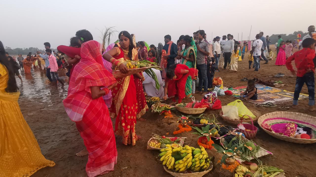 ବିହାରୀ ସମ୍ପ୍ରଦାୟର ଲୋକମାନେ ଭୁବନେଶ୍ୱରର କୁଆଖାଇ ନଦୀ କୂଳରେ ସୂର୍ଯ୍ୟ ଦେବତାଙ୍କୁ ପୂଜା କରୁଛନ୍ତି