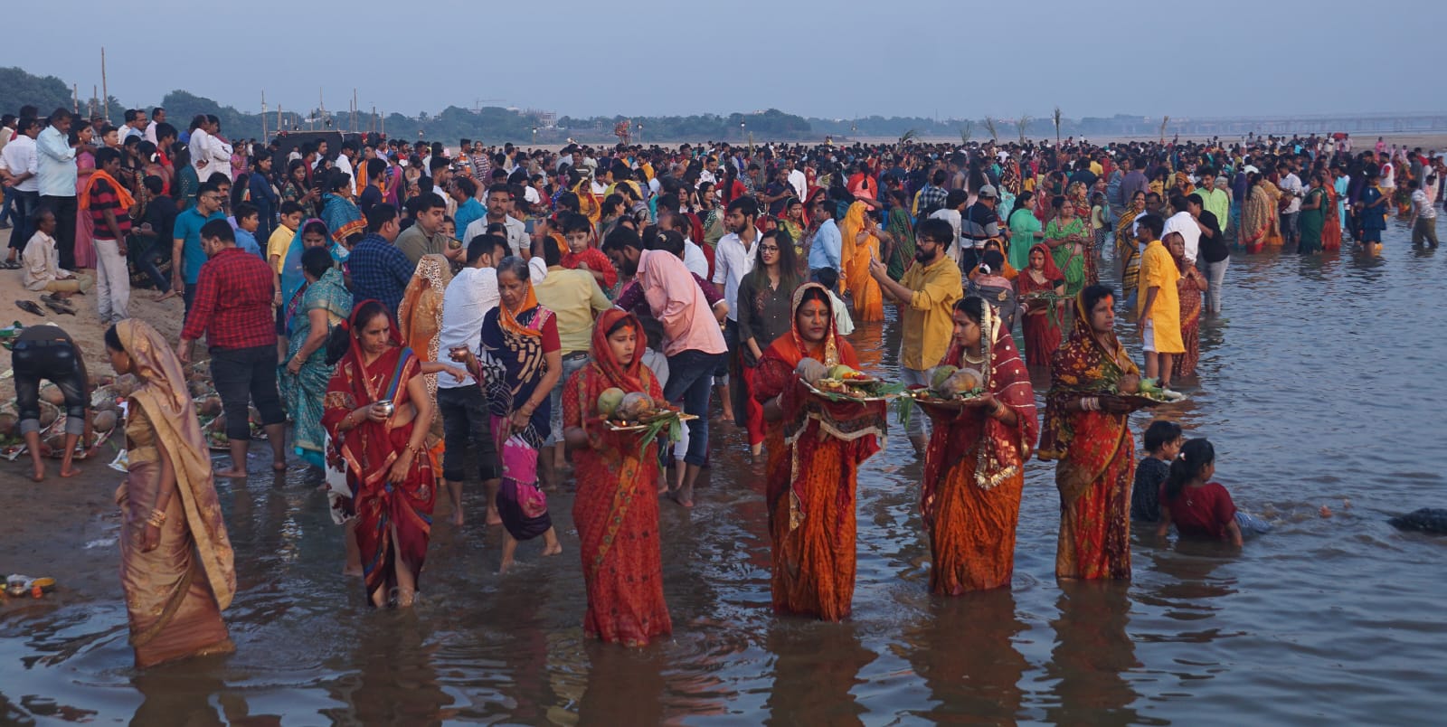 ବିହାରୀ ସମ୍ପ୍ରଦାୟର ଲୋକମାନେ ଭୁବନେଶ୍ୱରର କୁଆଖାଇ ନଦୀ କୂଳରେ ସୂର୍ଯ୍ୟ ଦେବତାଙ୍କୁ ପୂଜା କରୁଛନ୍ତି