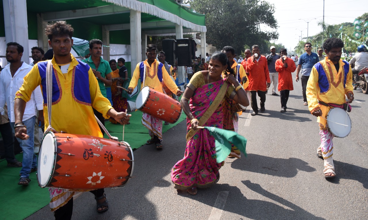 କେନ୍ଦ୍ର ସରକାରଙ୍କ ଦ୍ୱାରା ରାଜ୍ୟରେ କୃଷକମାନଙ୍କୁ କୃଷିବୀମା ପ୍ରଦାନ ଅବହେଳା ବିରୋଧରେ ବିଜେଡିର ରାଜଭବନ ସମୁଖରେ ଧାରଣାରେ ଜଣେ ମହିଳା ନୃତ୍ୟ ପ୍ରଦର୍ଶନ କରୁଛନ୍ତି ଓ କୀର୍ତନ ବାଜାବଜାଇ ରାଲିରେ ଆସୁଛନ୍ତି